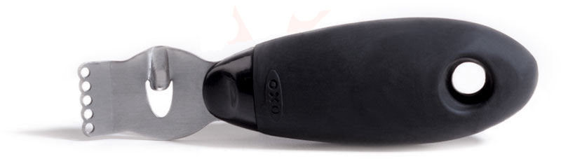 OXO's Lemon Zester is two tools in one. The sharp holes in its stainless steel head remove the zest from the pith of lemons and other citrus fruits easily, and a channel knife feature makes it easy to decorate for garnish. Its soft handle nestles comfortably in your palm and is designed to prevent it from spinning in your hand.