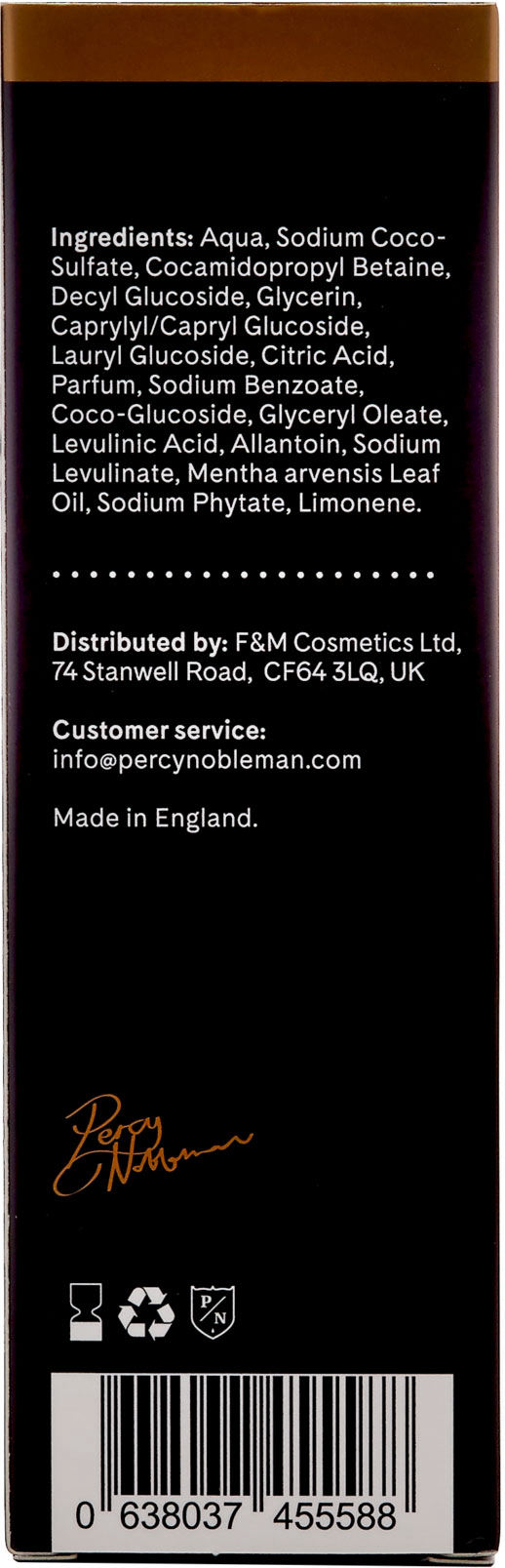 Scented with Peppermint & Cucumber, Percy Nobleman’s Face & Stubble Wash is purposefully designed to help soften and cleanse skin and stubble.