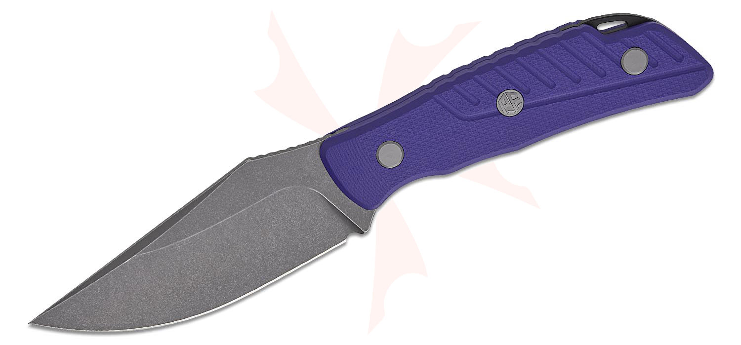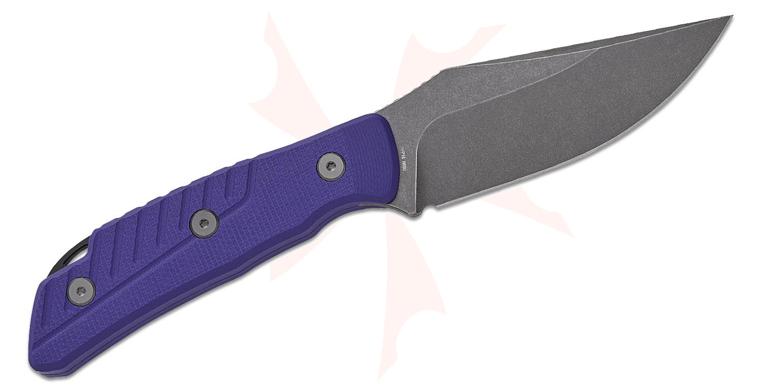 Petrified Fish PFP16 Barracuda Fixed Blade Knife 4" N690 Gray Stonewashed Clip Point Blade, Purple G10 Handles, Kydex Sheath - PFP16PGAW