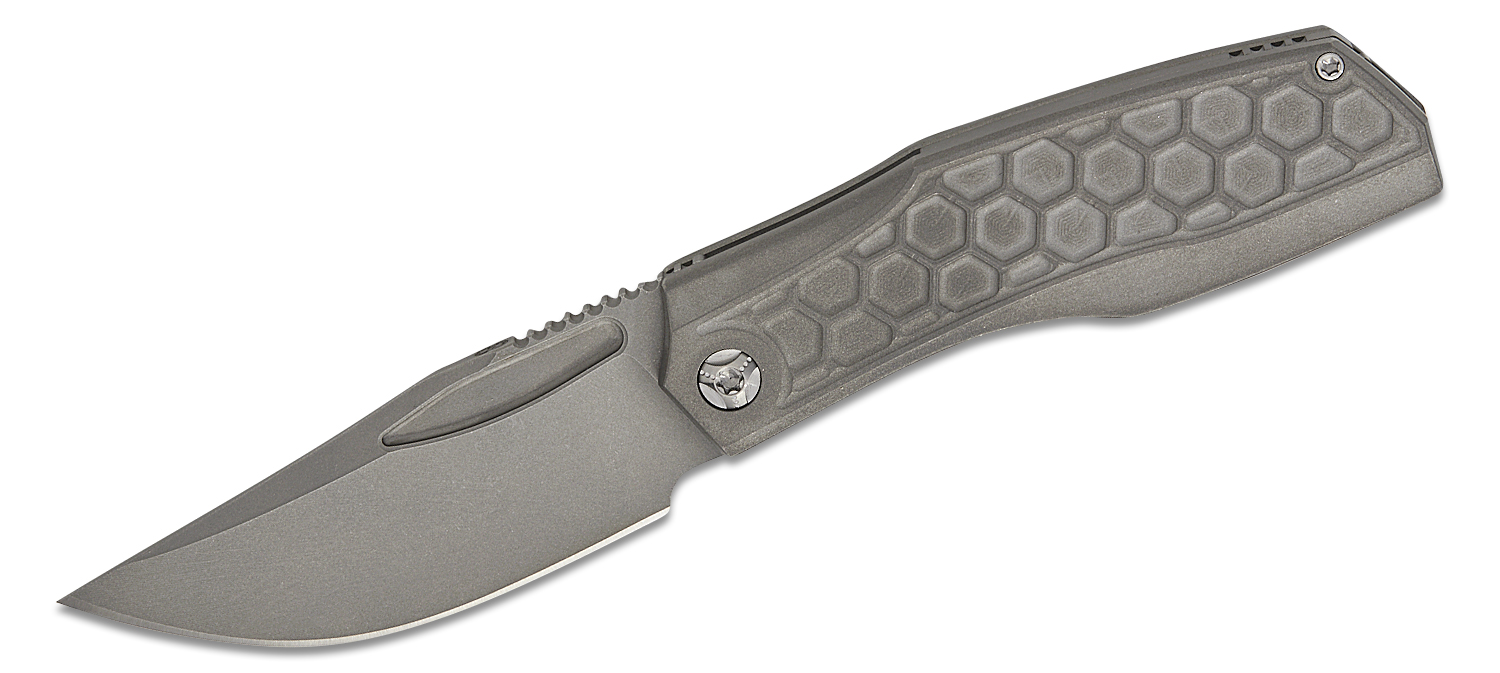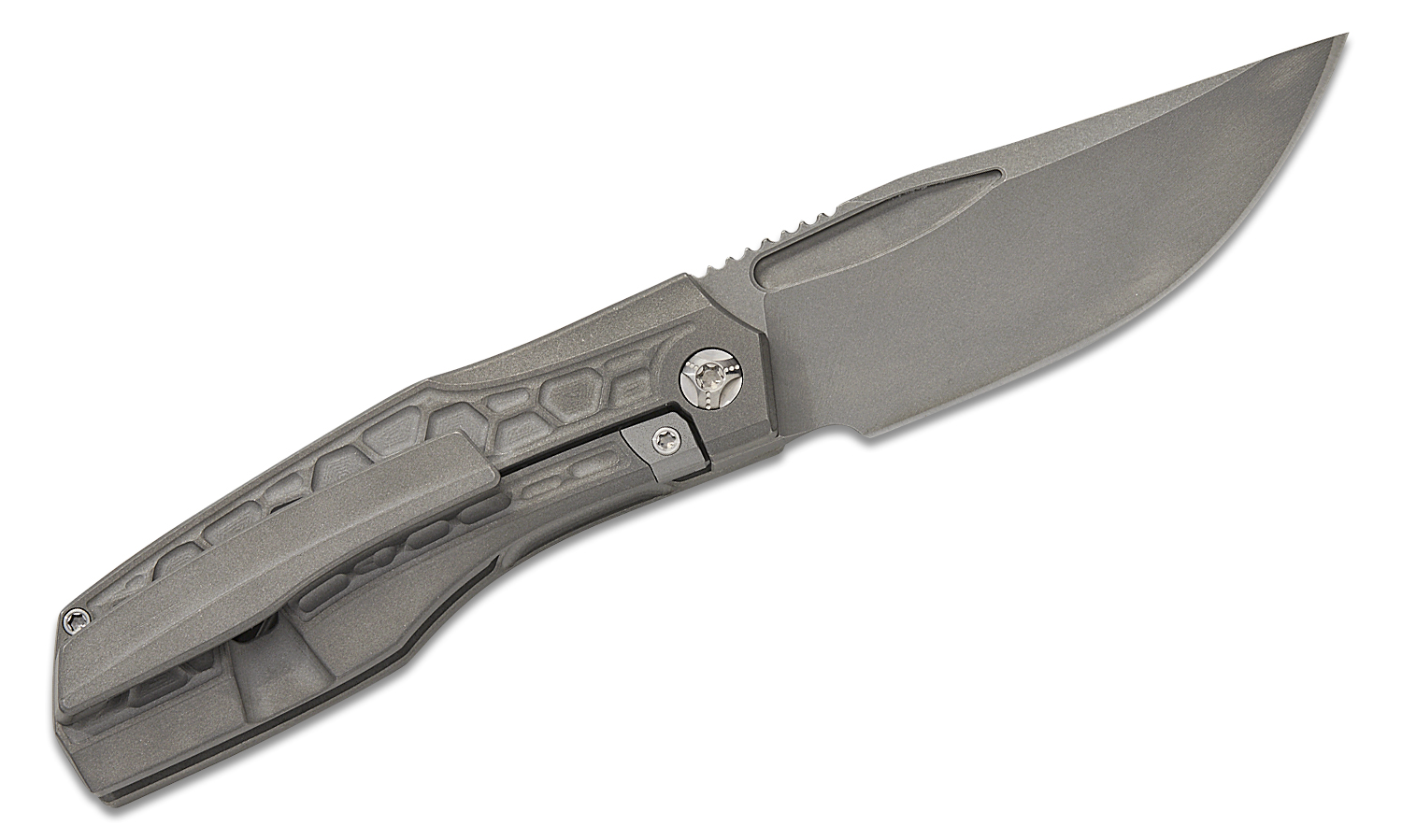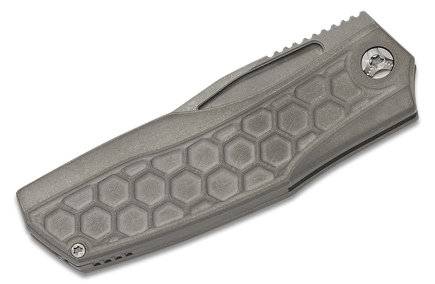 Prince Customs Protean #403 Frame Lock Folding Knife 3.13" CPM-20CV Blasted Clip Point Blade, Blasted Honeycomb Titanium Handles