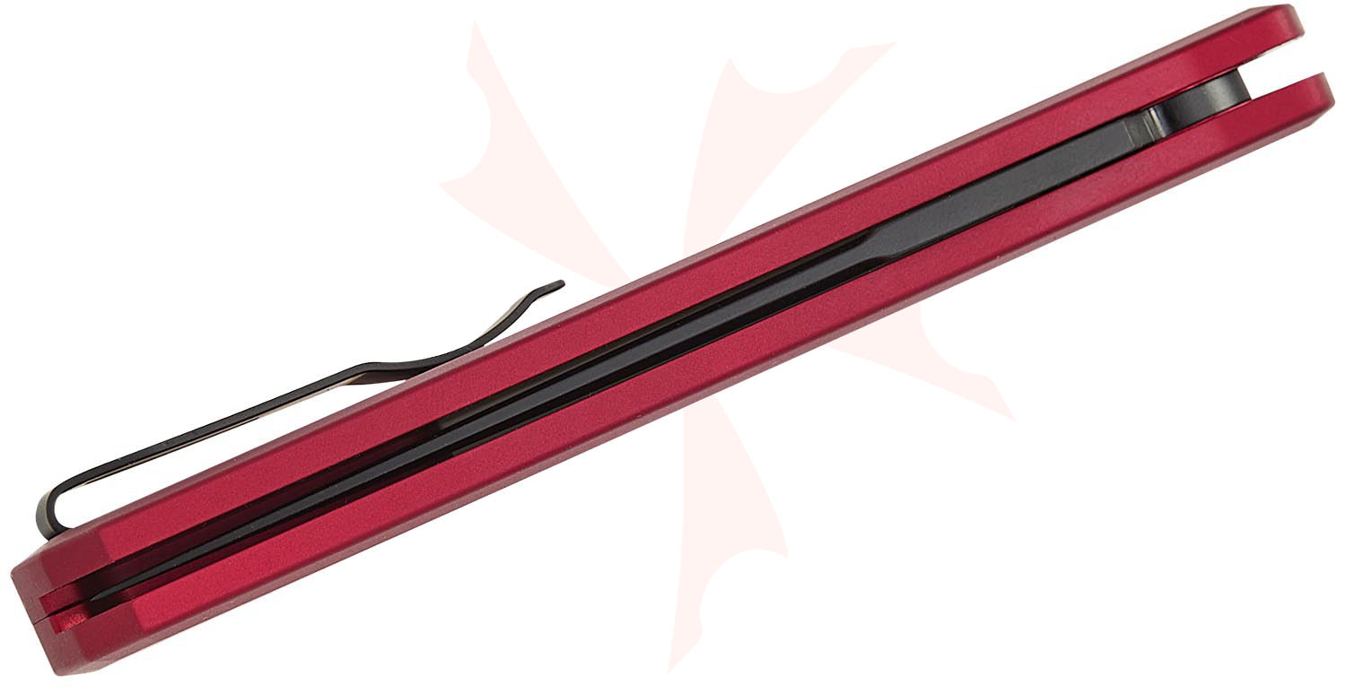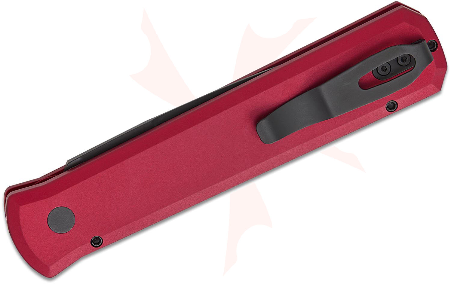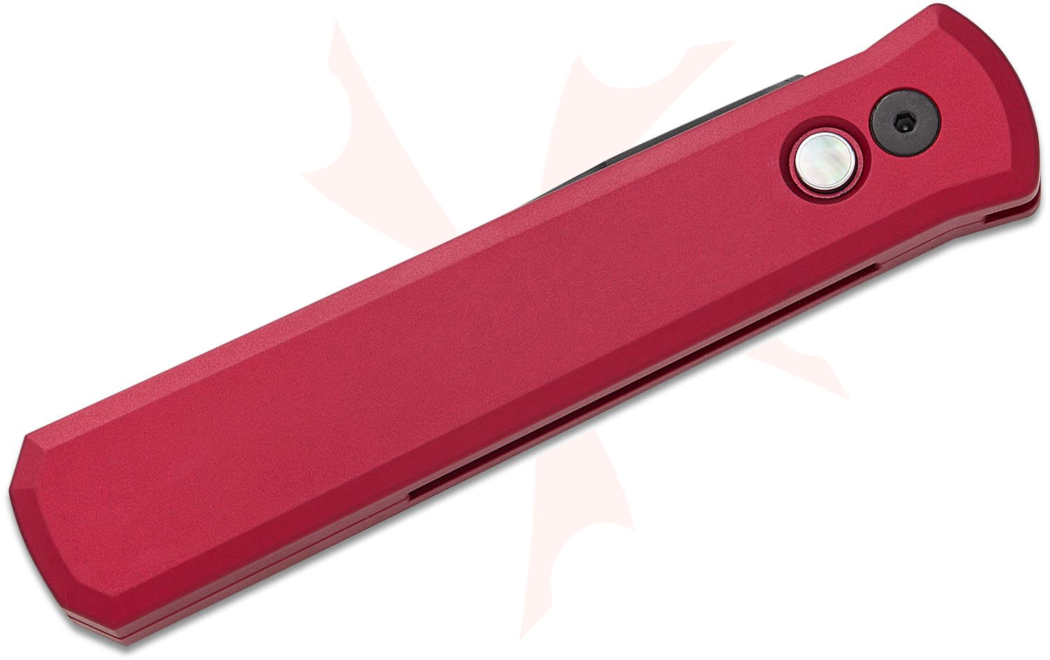 Pro-Tech 921 Limited Godfather AUTO Folding Knife 4" 154CM Black DLC Plain Blade, Red Aluminum Handles, Black Lip Pearl Button - 921-LTD Red