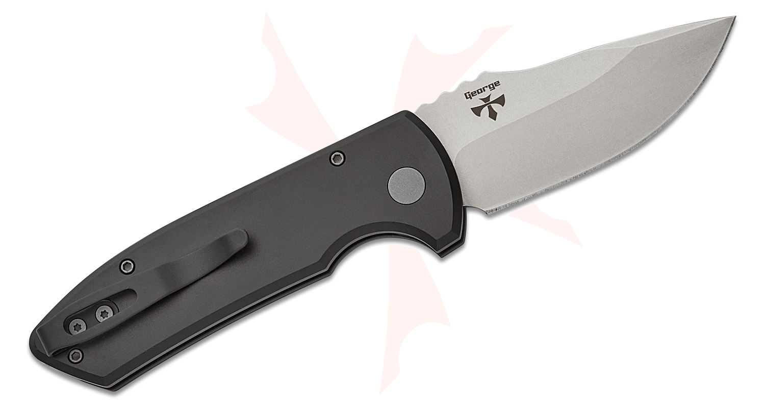 Pro-Tech LG401 Les George SBR Short Bladed Rockeye AUTO Folding Knife 2.5" S35VN Stonewashed Plain Blade, Black Aluminum Handles