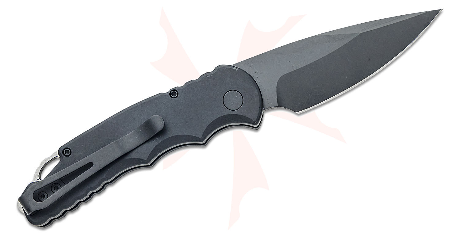 Pro-Tech TR-5 AUTO Folding Knife 3.25" S35VN Black DLC Plain Blade, Black Aluminum Handles - T503