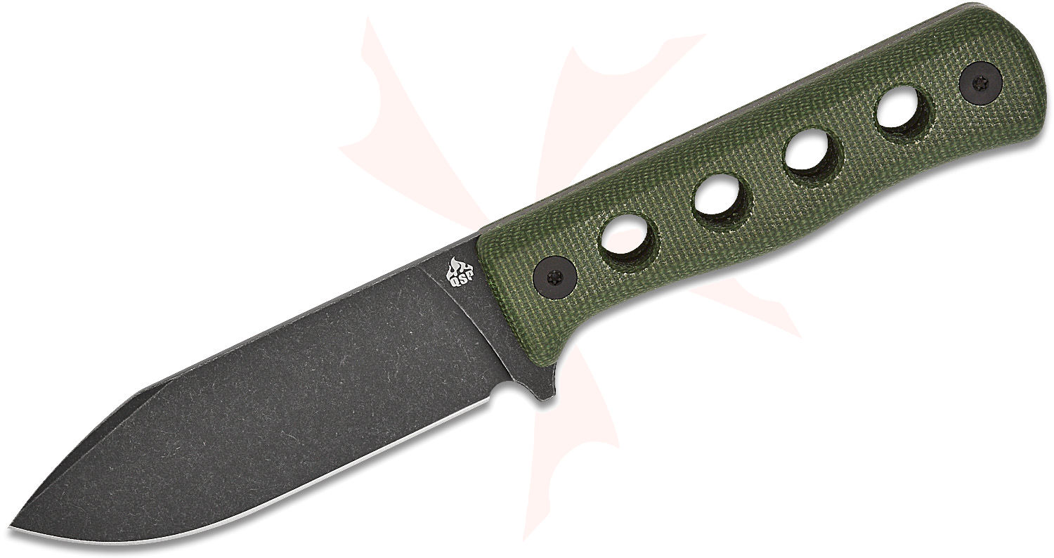 The QSP Canary is a handy fixed blade knife that is designed to be available to you at a moment's notice, whether for defense or just around the campsite. The black stonewashed Cr8Mo2VSi tool steel blade has the perfect amount of belly and is great for slicing or chopping. The handles have pronounced holes that reduce overall weight while the green Micarta handles provide a steady grip, even in wet conditions. The Kydex sheath holds the knife securely while resting on your belt. The spine jimping allows your thumb to lock in multiple carry positions, helping to cement this as one of QSP's best fixed blades.