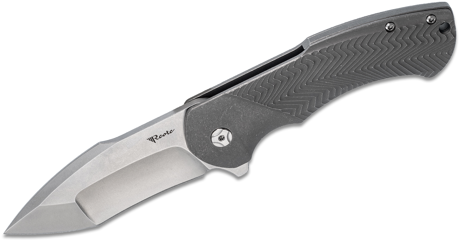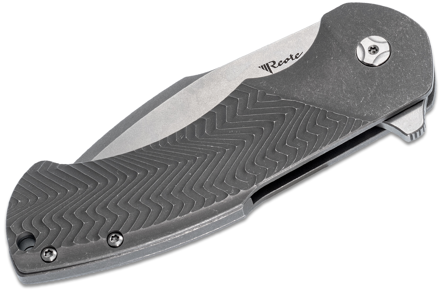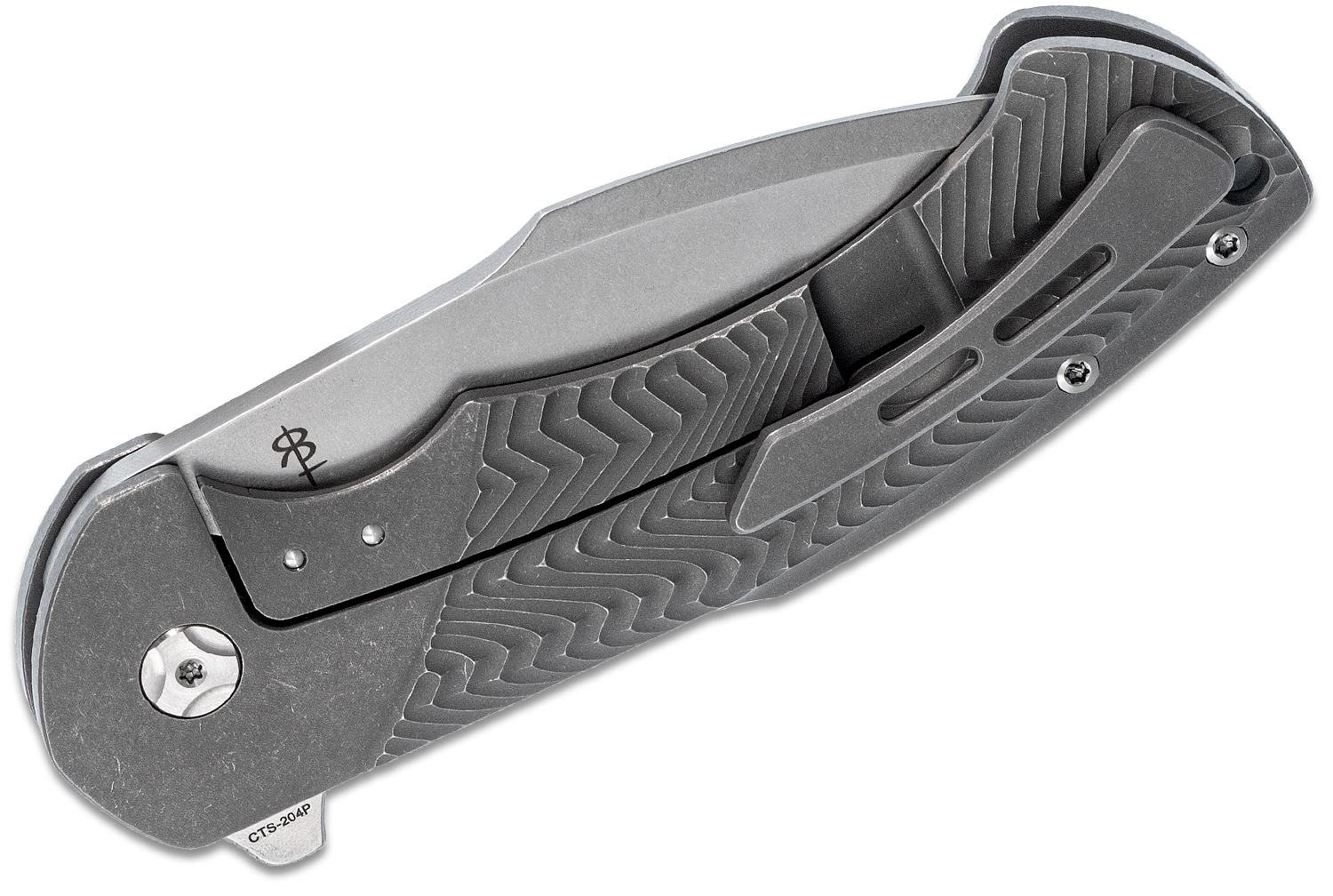 Reate Knives Rick Barrett Fallout 2.0 Flipper 3.6" CTS-204P Stonewashed Blade, Milled Titanium Handles, Frame Lock