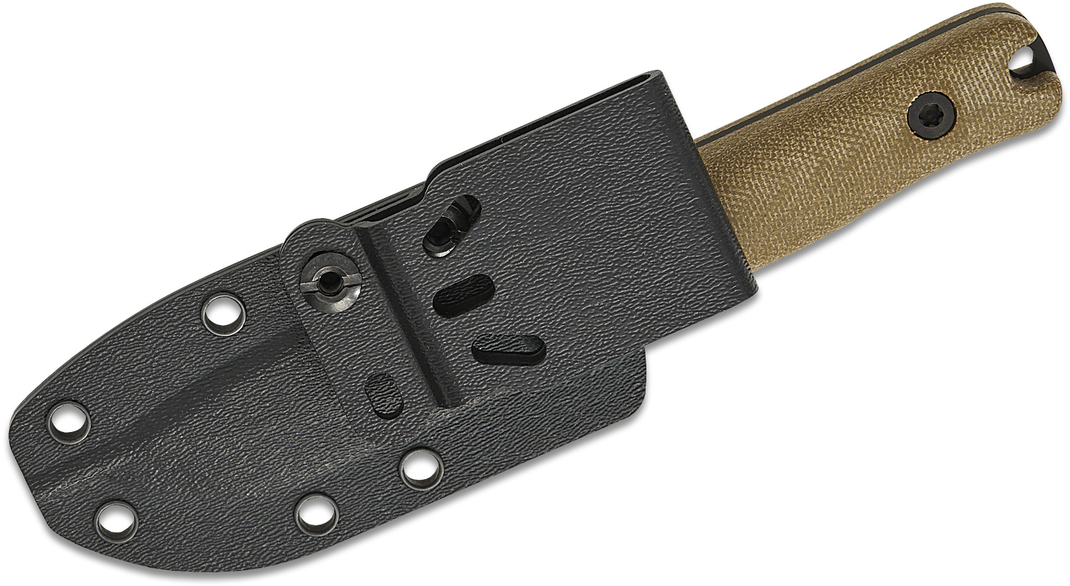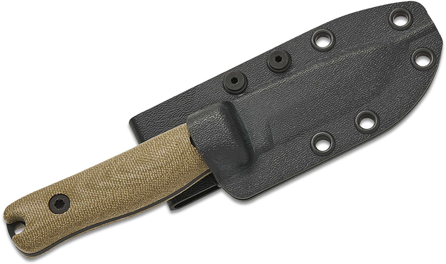 The Blades are constructed from high-impact tool steel or stainless steel, specially formulated to resist breaking and chipping during hard use. A high saber grind with a 20° degree per side convex micro bevel forms a tough but keen edge, capable of handling the finest cutting tasks. The sturdy full tang is skeletonized to reduce the overall weight, making them an ideal carry companion in the field or around town.
