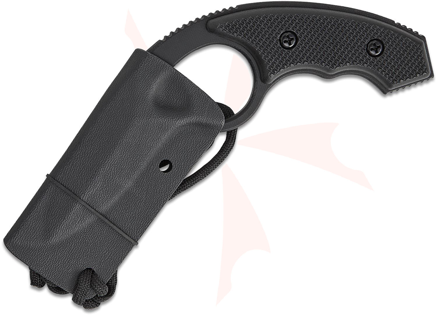 The Low Viz G10 is crafted from a high-pressure fiberglass epoxy laminate. The Kydex sheath is set up for pocket or purse carry with an additional hole to weave and tie paracord through to increase the sheath's tension. This blade is made from G10, and as such, repeated striking will result in the tip breaking. This is normal, and not a defect, the Low Viz G10 will still remain effective as a defensive tool.