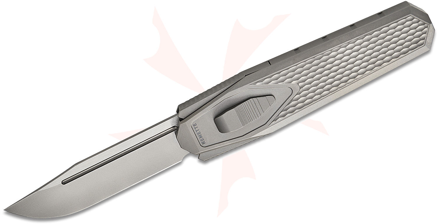 The RT-Swordfish is a cutting-edge OTF (out-the-front) gravity knife that combines innovative design with reliable performance in various environments. Remette’s commitment to continuous testing and improvement has resulted in a unique knife that offers both versatility and stability. The blade is made from M390 steel, known for its superior edge retention and corrosion resistance, while the handle is CNC-milled from titanium with a three-dimensional pattern to provide a secure, grippy texture for a confident grip. The knife is deployed by pushing a slide on the front handle to let the blade fall out or with a quick flick of the wrist, and it locks securely when deployed to ensure safety in any scenario.