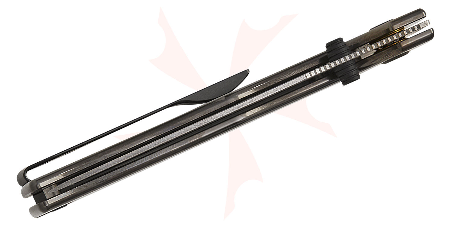 The Monza's ceramic ball bearing action provides for a smooth opening and closing experience. A robust thumb stud provides for one-handed blade deployment. But what really makes the Monza a modern marvel is a completely redesigned mechanism they call the Recoil Lock. This ingenious locking system is a gift to the knife community by knife wunderkind SNECX Tan, who refers to it as his PowerLock. Thank you, SNECX, for this remarkable innovation. The beauty of Tan's recoil lock is the simple yet efficient design. The ambidextrous action delivers positive force (grip) to secure the blade in its rock-solid open position. Closing the knife is accomplished by sliding the backspacer to the rear, eliminating accidental blade unlock.