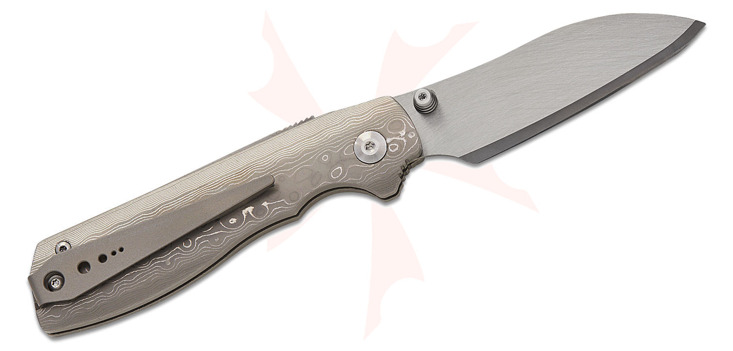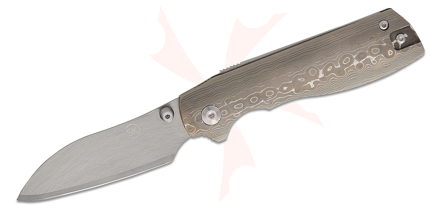 Sandrin Knives Torino Recoil Lock Folding Knife 2.95" Polyhedral Tungsten Carbide Raw Sheepsfoot Blade, Contoured Damascus Steel Handles, Reversible Clip, Recoil-Lock - Torino Damascus