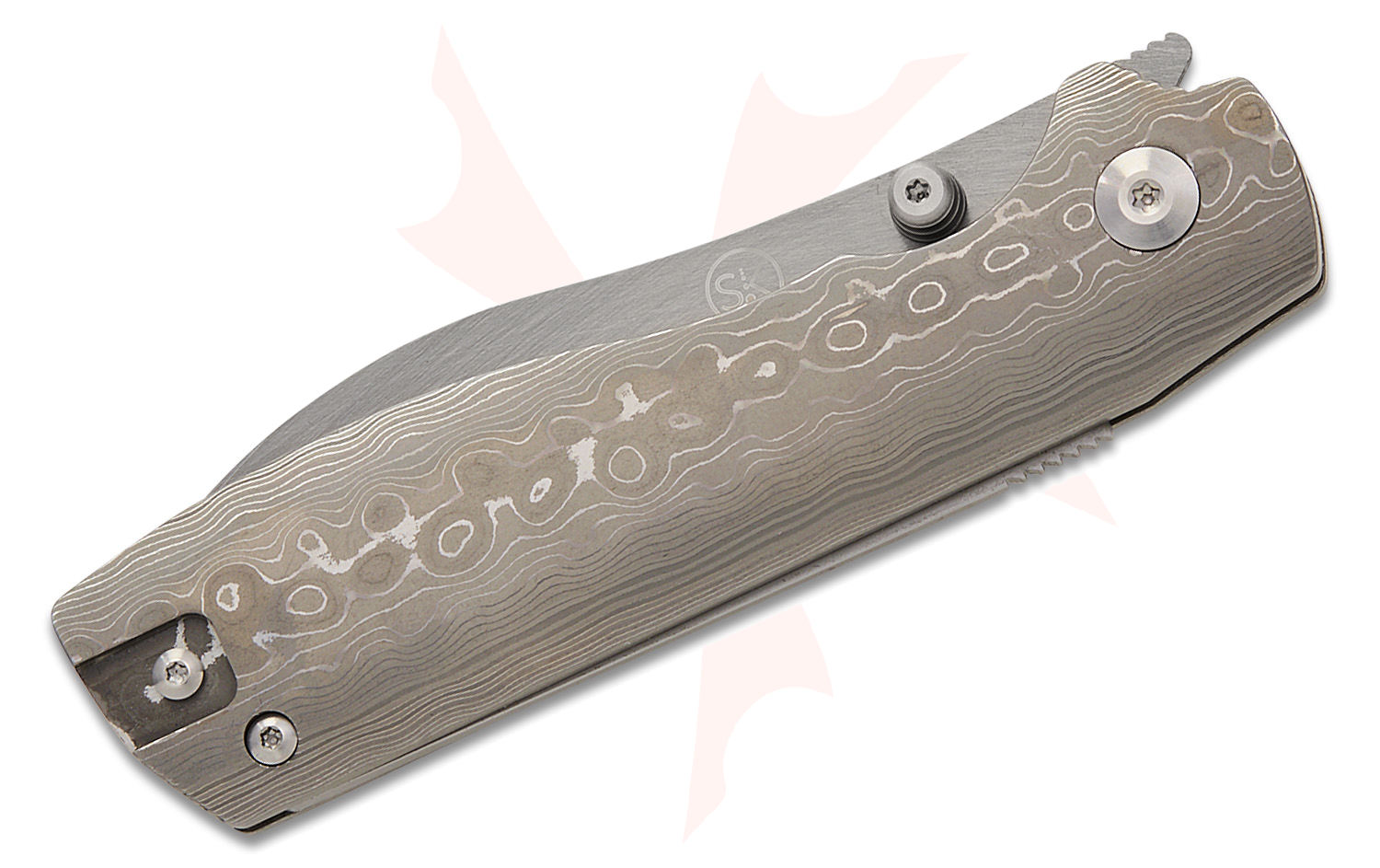 Contoured Damascus steel scales provide both durability and more than a touch of class; this knife is a true standout! A reversible titanium pocket clip enables right- or left-hand carry and features a Fibonacci hole sequence design, a distinctive mathematical trademark of Sandrin Knives. At 4.44 ounces, Torino Damascus is much weightier than the original, but it's totally worth it. And, with a blade length of 2.95 inches, it’s also legal to carry in most jurisdictions.