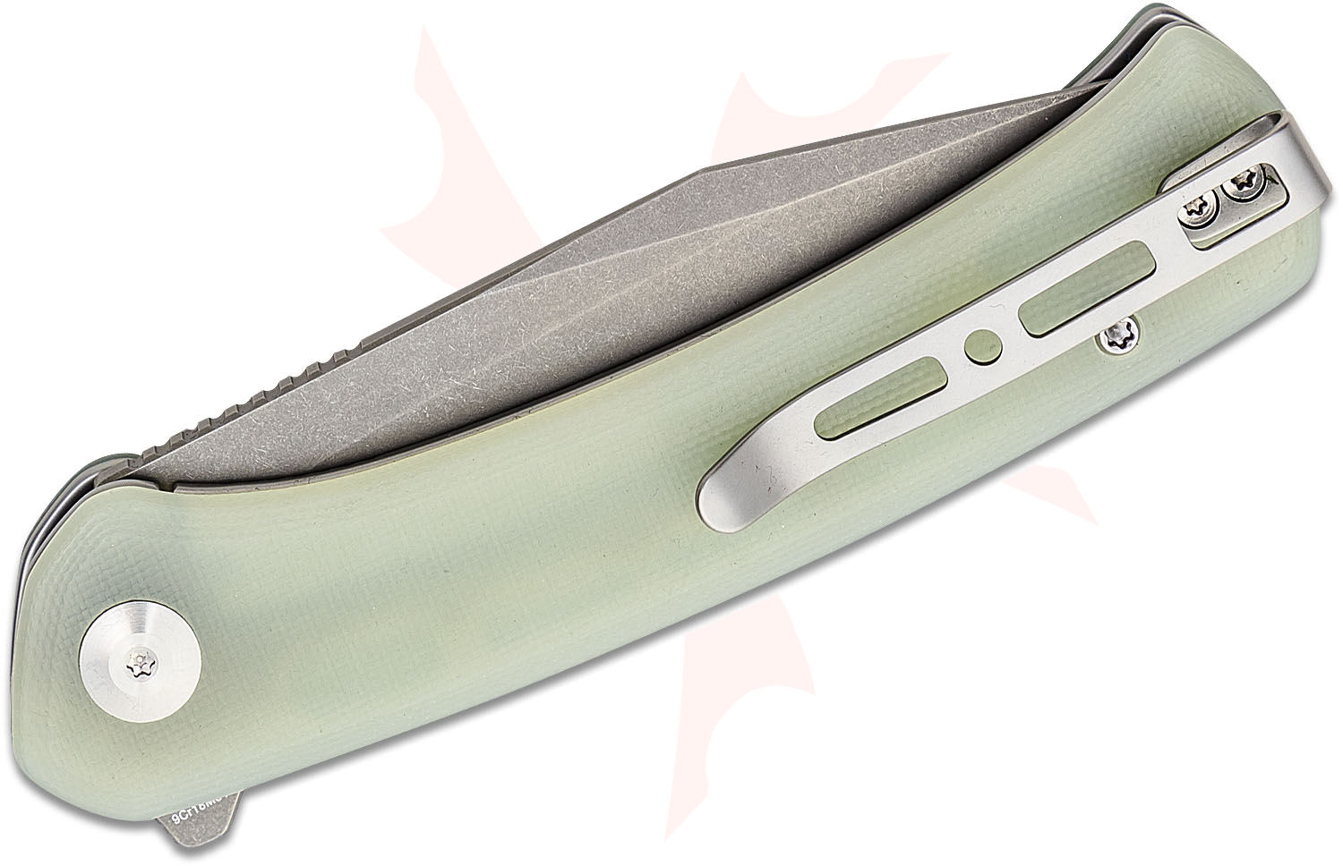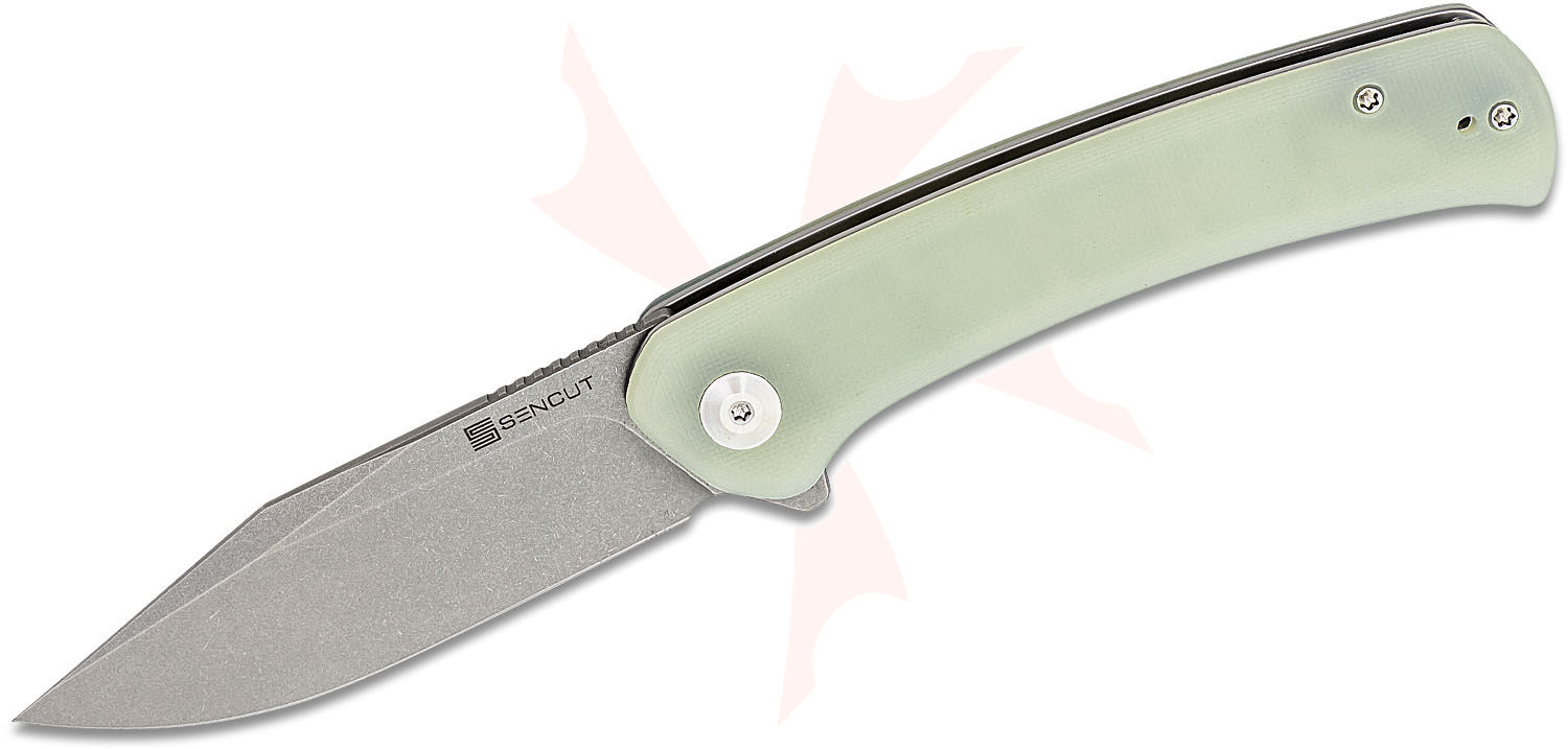 Sencut Knives SA05C-V1 Snap Flipper Knife 3.48" Stonewashed Clip Point Blade, Natural (Jade) G10 Handles, Liner Lock