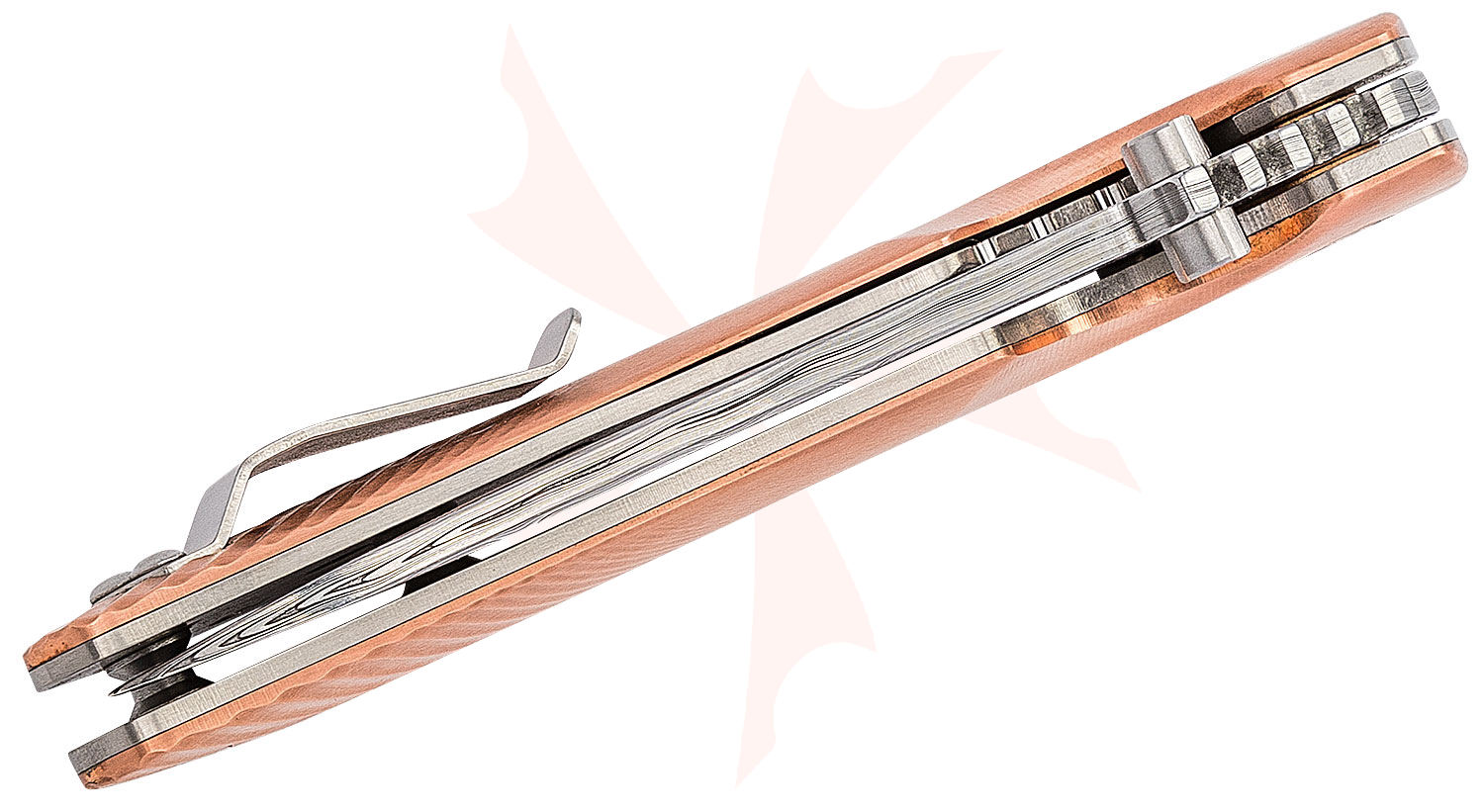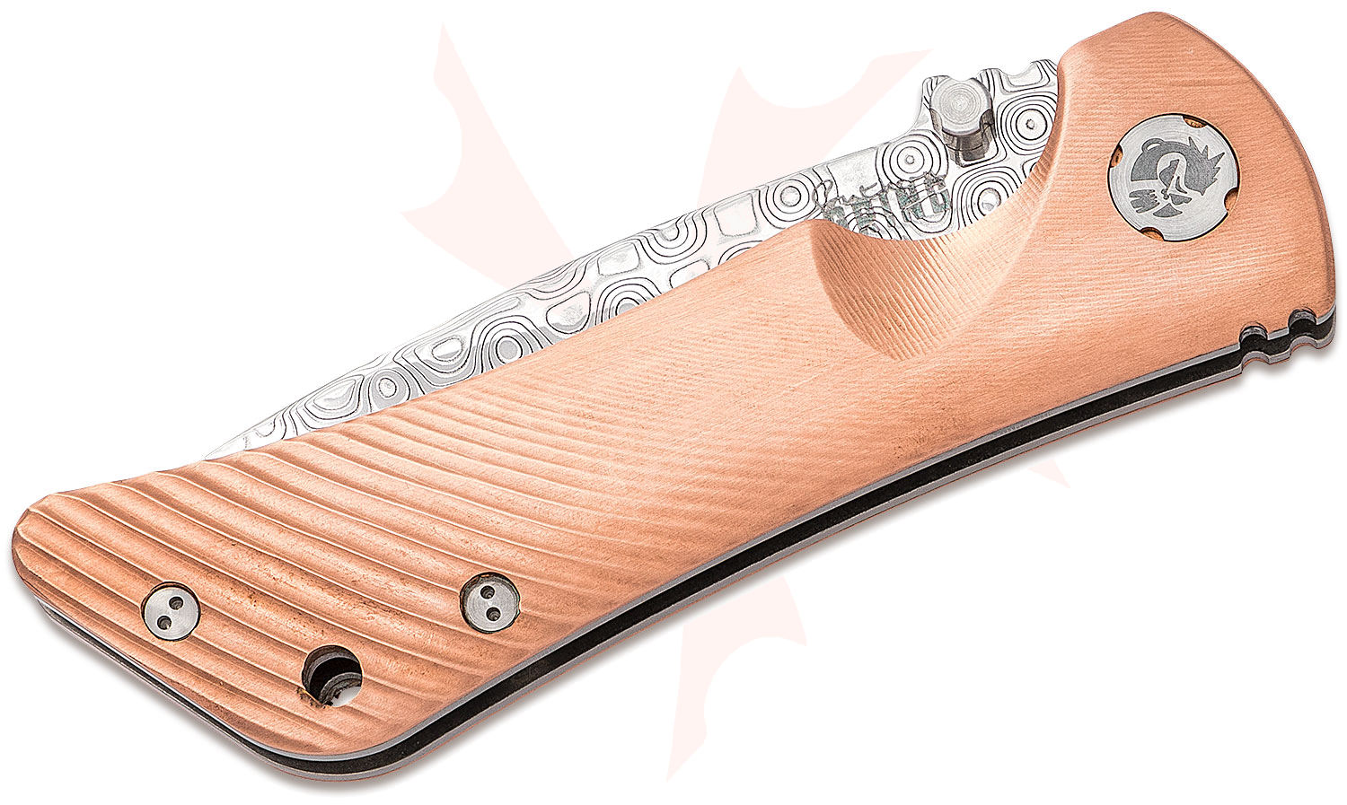 Southern Grind Spider Monkey Folding Knife 3.25" Damascus Plain Drop Point Blade, Copper Handles, Liner Lock - SG06030809