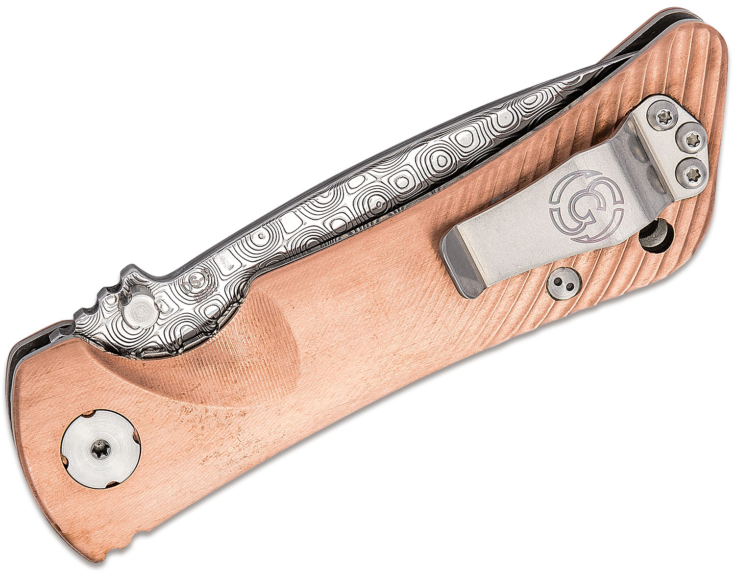 The Spider Monkey is the compact version of Southern Grind's flagship model, the Bad Monkey, and what an excellent little EDC blade this is. It gets a lot of design aspects correct like balance, grip, fit, finish, and definitely the materials. This Spider Monkey features a flat ground black 3.25" drop point blade made from Damascus steel. The handles are made from copper over full-length 6Al-4V titanium liners. Red Metals such as copper have strong natural antimicrobial, antibacterial and antifungal properties. Tarnishing is a naturally occurring process that happens when this material reacts with outside elements, such as oxygen, moisture or human touch. Because the handle scales are made of real copper, they will tarnish and patina. The pocket clip might be small but it is sturdy and provides strong retention while being easy to get in and out of the pocket. Another great design from Southern Grind, we look forward to seeing more variations of it in the future.