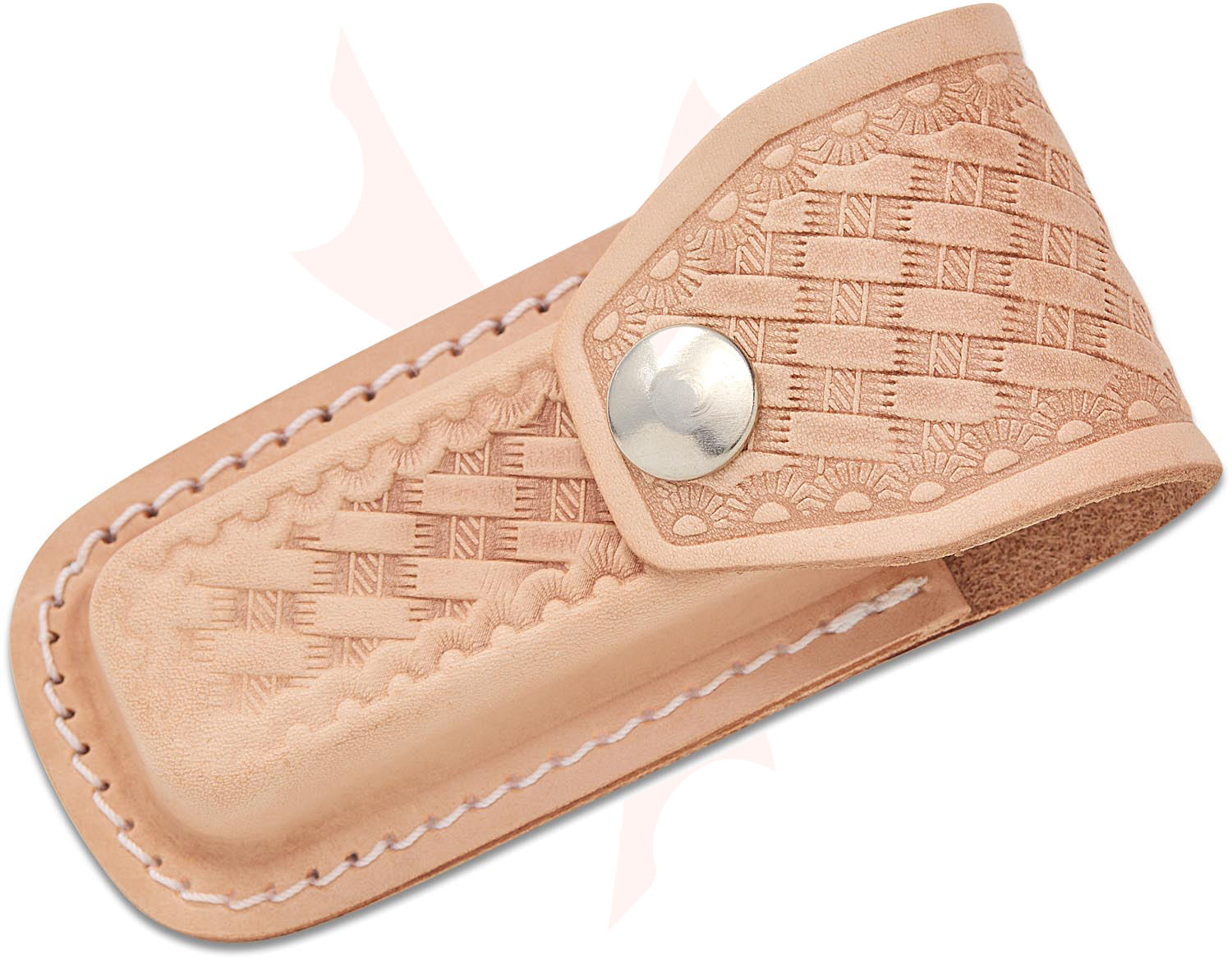 Basketweave Leather Sheath (Natural) Fits 3-1/2" to 4" Folders