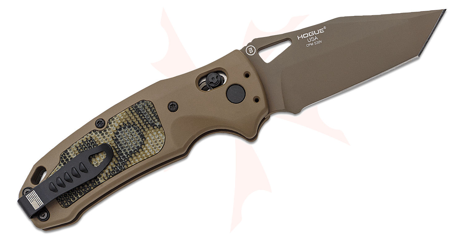 SIG Sauer by Hogue K320 AXG Scorpion ABLE Lock Folding Knife 3.5" S30V FDE Cerakote Tanto Plain Blade, FDE Aluminum Handles with G-Mascus Green G10 Inserts, AXIS/Crossbar Lock - 36365