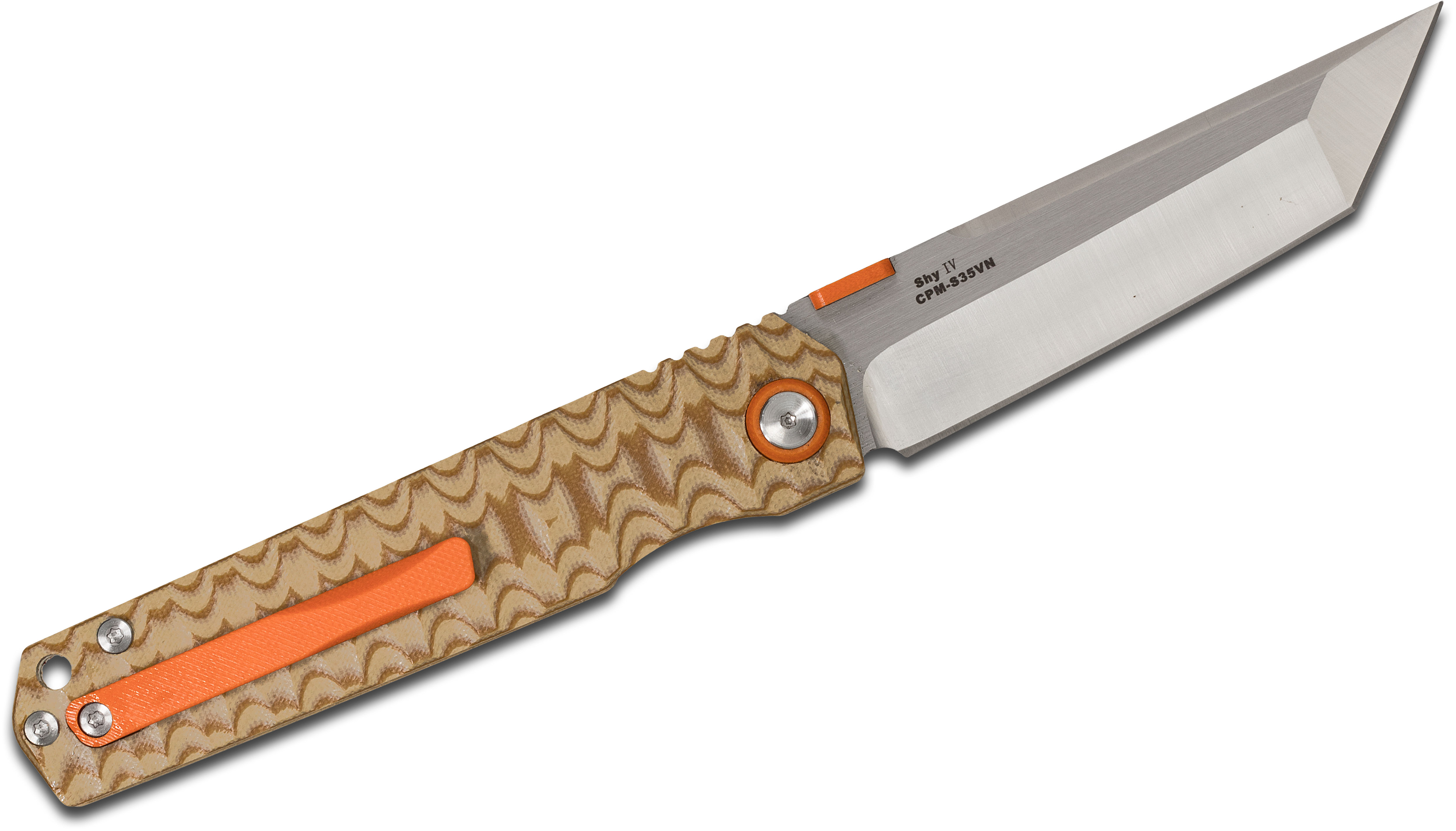 Stedemon Knife Company SHY IV Folding Knife 3.875" S35VN Tanto Blade, Tiger Stripe Concave/Convex G10 Handles, Liner Lock - SHY IV 18