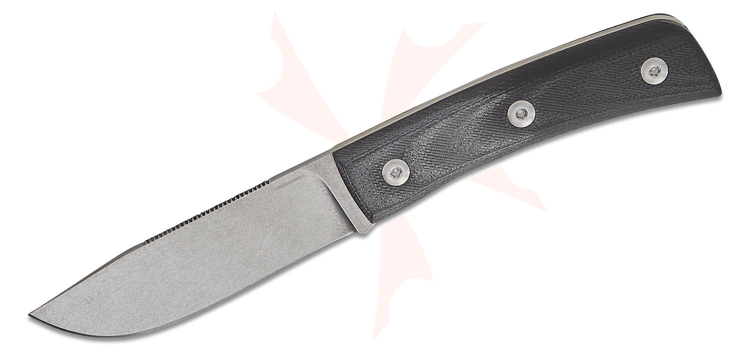 StraightLine EDC Igor Bortolussi Buster Fixed Blade Knife 2.68" M390 Stonewashed Clip Point Blade, Black G10 Handles, Smart Mag Leather Sheath - BS-BG