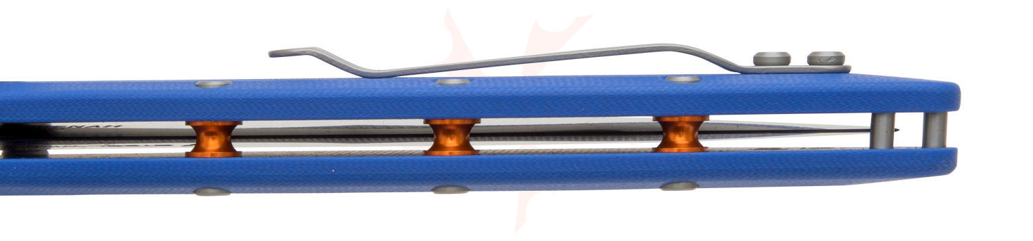 Steel Will Gienah F53-13 Folding Knife 3.9" Satin D2 Drop Point Blade, Contoured Blue G10 Handles, Orange Aluminum Standoffs, Liner Lock