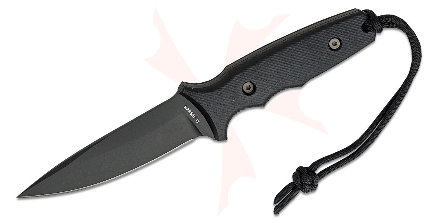 Spartan Blades Harsey TT Tactical Trout Fixed Blade Knife 4.5" S45VN Black Spear Point, Black Micarta Handles, Black Kydex Sheath - SB43BKBKKYBK