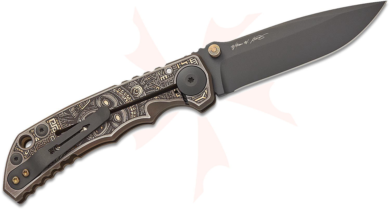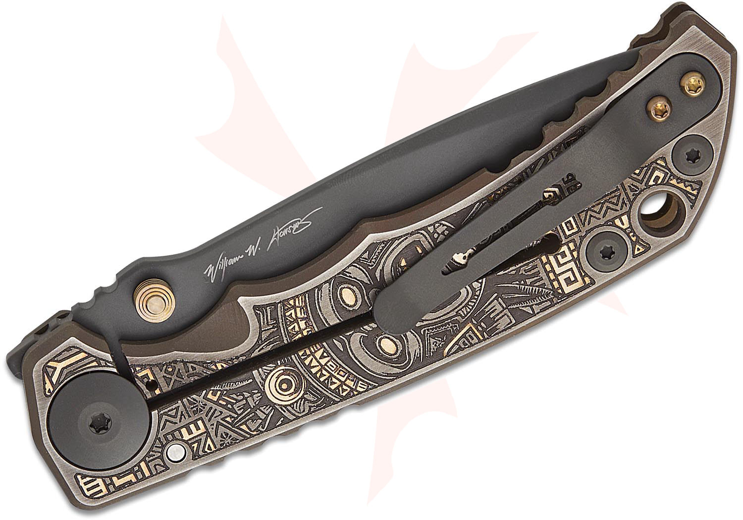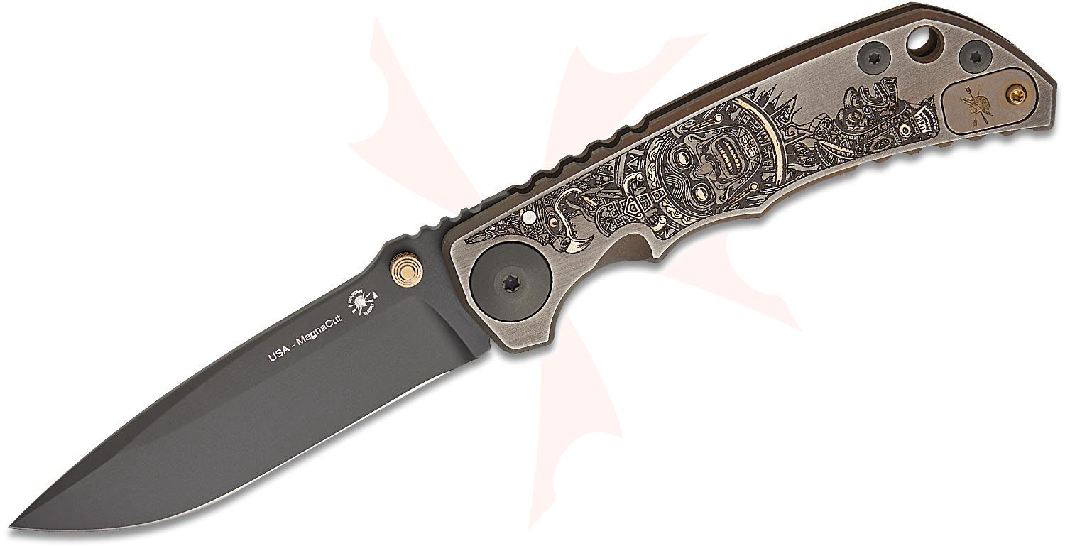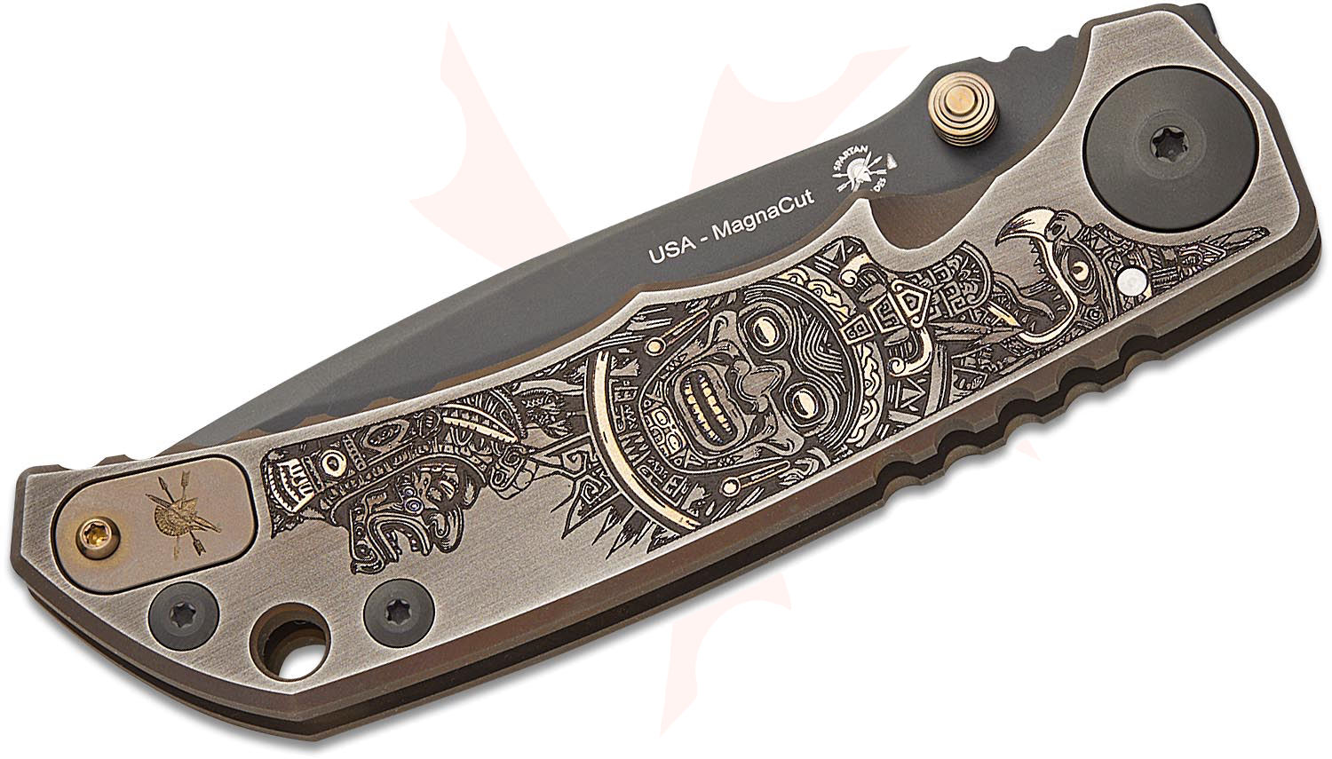 Spartan Blades Special Edition SHF Harsey Folding Knife 3.95" CPM-Magnacut Black PVD Blade, Aztec Engraved Titanium Handles, Frame Lock - SF5AZTC
