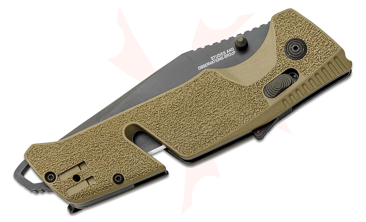SOG Trident AT Flat Dark Earth Assisted Folding Knife 3.7" D2 Black Tanto Plain Blade, FDE GRN Handles, AXIS/Crossbar Lock - 11-12-12-41