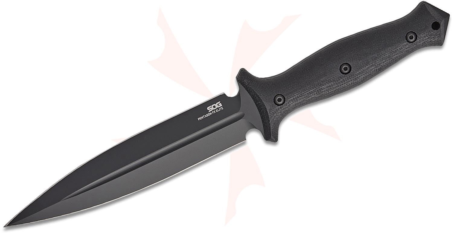 SOG Pentagon FX Elite Fixed Blade Knife 5.75" S35VN Black Double Edge Dagger, Black Micarta Handles, Kydex Sheath - 17-61-05-57
