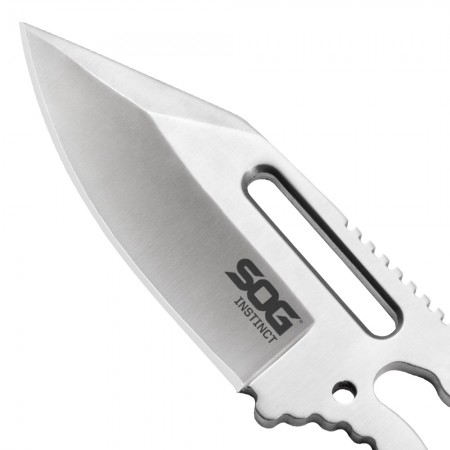 There's a feeling and intuition that comes when you're in situations that demand your full attention. The Instinct is a compact, wearable fixed blade knife that is made just for those times. The Instinct offers multiply carry options. It can worn around the neck with a lanyard. It can be clipped to a belt or boot with the multi-angle adjustable clip. It can also be secured to a vest or bag with its many attachment points. When your first instinct is to go for a blade, consider the SOG Instinct.