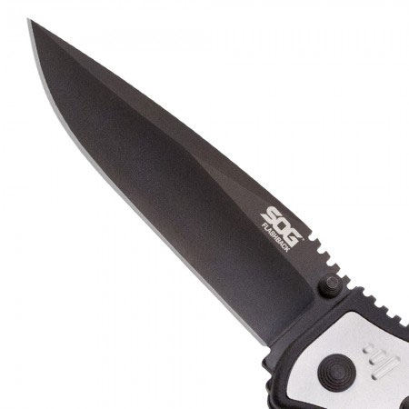 SOG Flashback Assisted 3.5" Black Plain Blade, GRN and Stainless Steel Handles, Piston Lock - SAT002