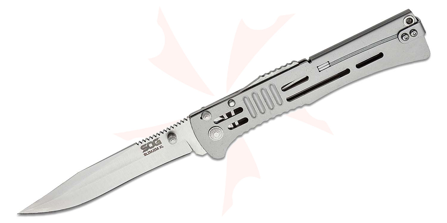 SOG SlimJim XL Folding Knife Assisted 4.18" Satin Plain Blade, Bead Blast Handles, Lockback - SJ51-CP