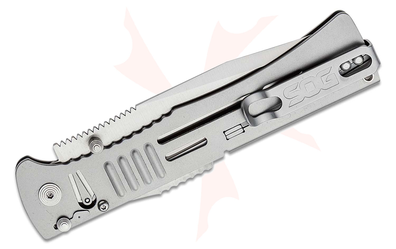 Our technical assisted folding knife line, stands out by virtue of simplicity and minimalism. It doesn’t try to be the biggest or the loudest in the crowd. It is unobtrusive but always there when you need it. Constructed from a single piece of steel, SlimJim is just that, the slimmest assisted knife in the world. Start to open the blade, and let SOG Assisted Technology (S.A.T.) finish the action with a bang, using one of the surest assisted technologies out there. Tactile bumps and cutouts aid in control while all features are purposeful and functional. The patent-pending safety is used to insure the retention of the blade in the handle as well as acts as a double lock in the open position. The stealth carry clip is reversible.