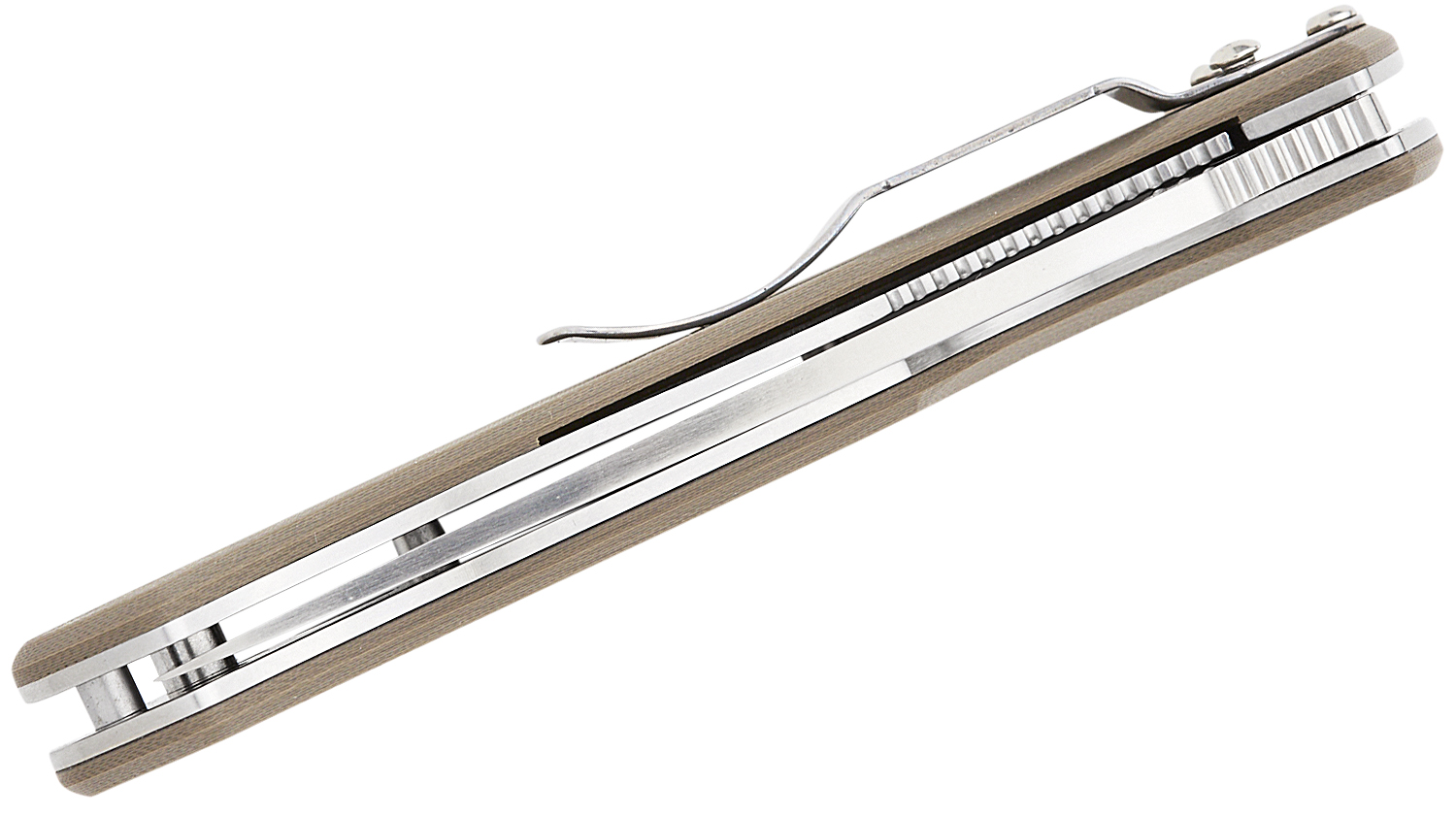 On the "business end," standard versions of the Tenacious feature a beautifully full-flat-ground stainless steel blade with a textured thumb ramp and a fully accessible Trademark Round Hole for swift, positive, one-handed opening with either hand. The blade's minimal ricasso also allows the edge to extend all the way to the handle for maximum edge length and extreme control when cutting with the "heel" of the blade.