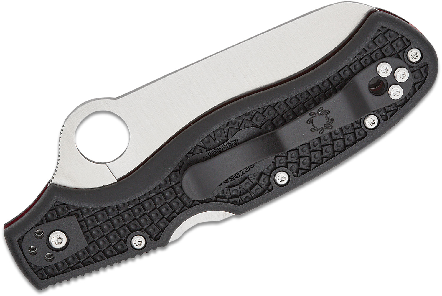 Created as a tribute to our nation's courageous firefighters, Spyderco's “Thin Red Line” knives are distinctive expressions of their workhorse lightweight models. Their defining feature is their unique handle design, which showcases black fiberglass-reinforced-nylon (FRN) handle scales accented by a bright red lining and a matching red backspacer. This color theme symbolizes the “thin red line” first responders represent between the normalcy of our daily world and the chaos of life-threatening emergencies. The VG-10 blades of these knives also combine the enhanced edge geometry of a full-flat grind with the voracious cutting power of Spyderco serrations. To honor the selfless service of first responders, every blade is proudly laser engraved with the motto “Save and Serve.” All other features of these elite knives are consistent with the standard versions of these models, including reliable back lock mechanisms, skeletonized stainless steel liners, four-position pocket clips, and Bi-Directional-Textured injection-molded FRN handles. A potent pocket-sized rescue tool, the Thin Red Line Rescue features a SpyderEdge cutting edge and blunt-tipped sheepsfoot blade.