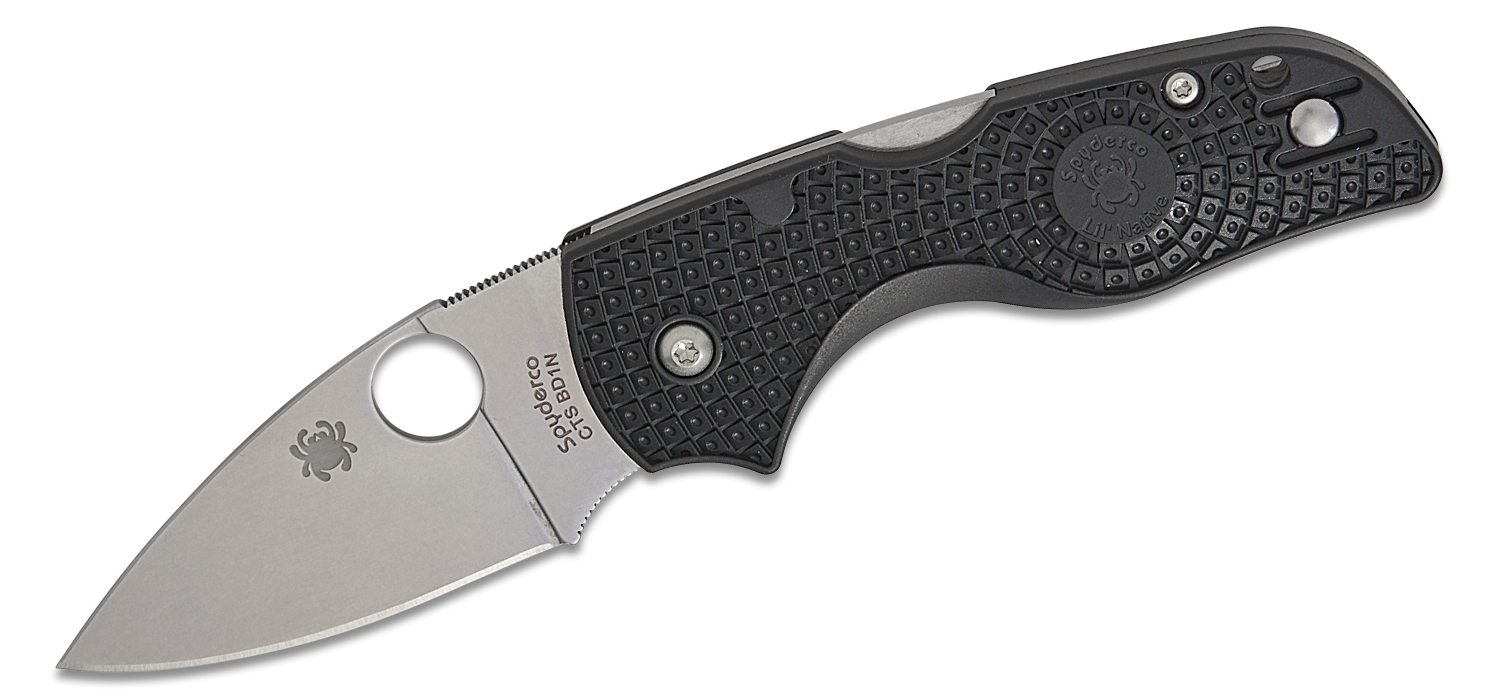 The blade of the Lil' Native Lightweight is crafted from Carpenter Technology's CTS BD1N stainless steel, which provides an excellent balance of edge retention, corrosion resistance, toughness, and ease of sharpening. Full-flat ground for exceptional edge geometry, the blade proudly includes a fully accessible Trademark Round Hole for easy one-handed opening with either hand. Standard versions of the Lil' Native Lightweight feature a tumbled blade finish and brightly finished handle hardware. For users concerned with light discipline or those who simply prefer the aesthetics of an all-black knife, the knife will also be available with a non-reflective Diamond-Like Carbon (DLC) blade coating and a matching black-coated lock bar, clip, and hardware. Both finish options will be available in PlainEdge and fully serrated SpyderEdge configurations.