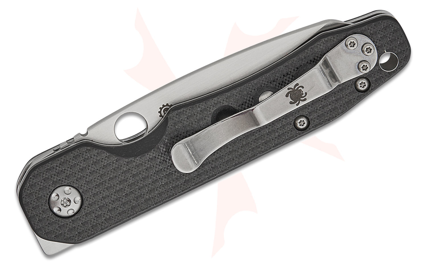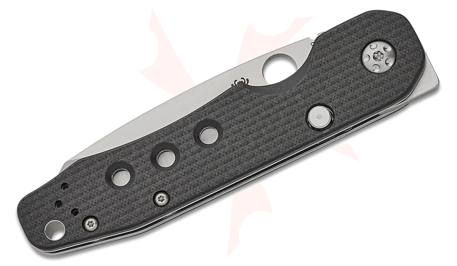 Faithfully accurate to Smock's SK23 design, the Spyderco Smock is a slim, high-performance folding knife ideal for everyday carry. Its hollow-ground blade is precision machined from CPM S30V stainless steel and features a unique profile that balances low-friction edge geometry, tip strength, and point utility. The blade includes both a Trademark Round Hole and an elegantly simple index-finger flipper for swift, ambidextrous, one-hand opening. Unlike most flippers, which protrude from the spine of the handle when the knife is closed, the Smock's forward-positioned flipper is simply a corner of the blade's tang that flows seamlessly into the lines of the closed knife. Despite its understated appearance, it offers excellent leverage and, when stroked with the index finger, instantly propels the blade into the open position. A pair of special ball-bearing pivot washers enhance the flipper's operation, ensuring an ultra-smooth action and reliable, positive lock-up. Spyderco's expression of the design also includes a dedicated detent mechanism separate from the knife's lock that keeps the blade safely closed during carry and provides optimal resistance for the flipper.