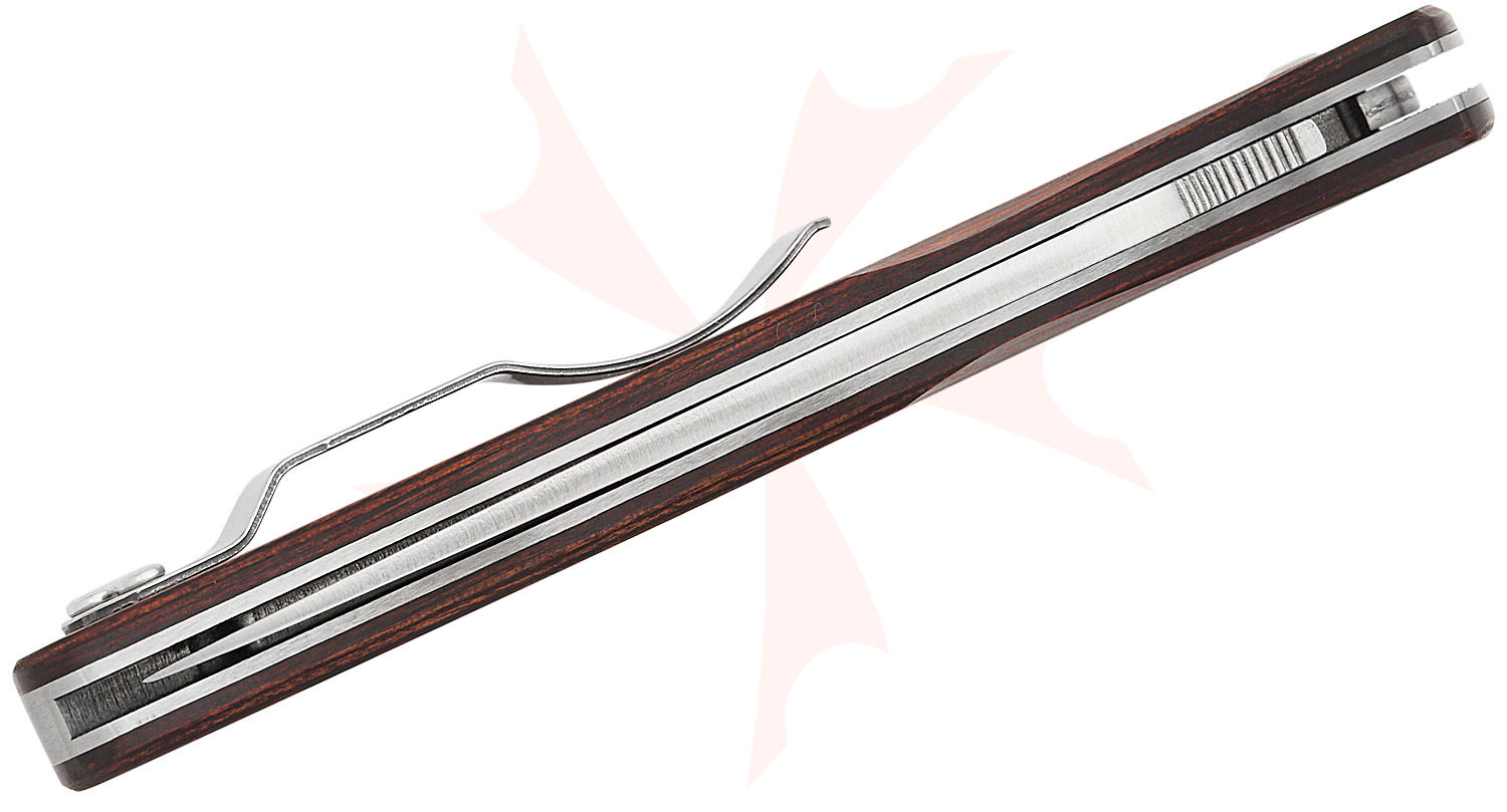 The Pakkawood material that makes up the scales combines the durability and stability of a phenolic laminate with the rich beauty of natural wood. Unlike natural wood, you won't have to worry so much about Pakkawood shrinking, expanding, or cracking. It is also much better suited to moisture than standard woods. Full stainless steel liners, backspacer, and lock back complete this durable little knife. A David Boye dent on the lock release makes it less susceptible to accidental disengagement.
