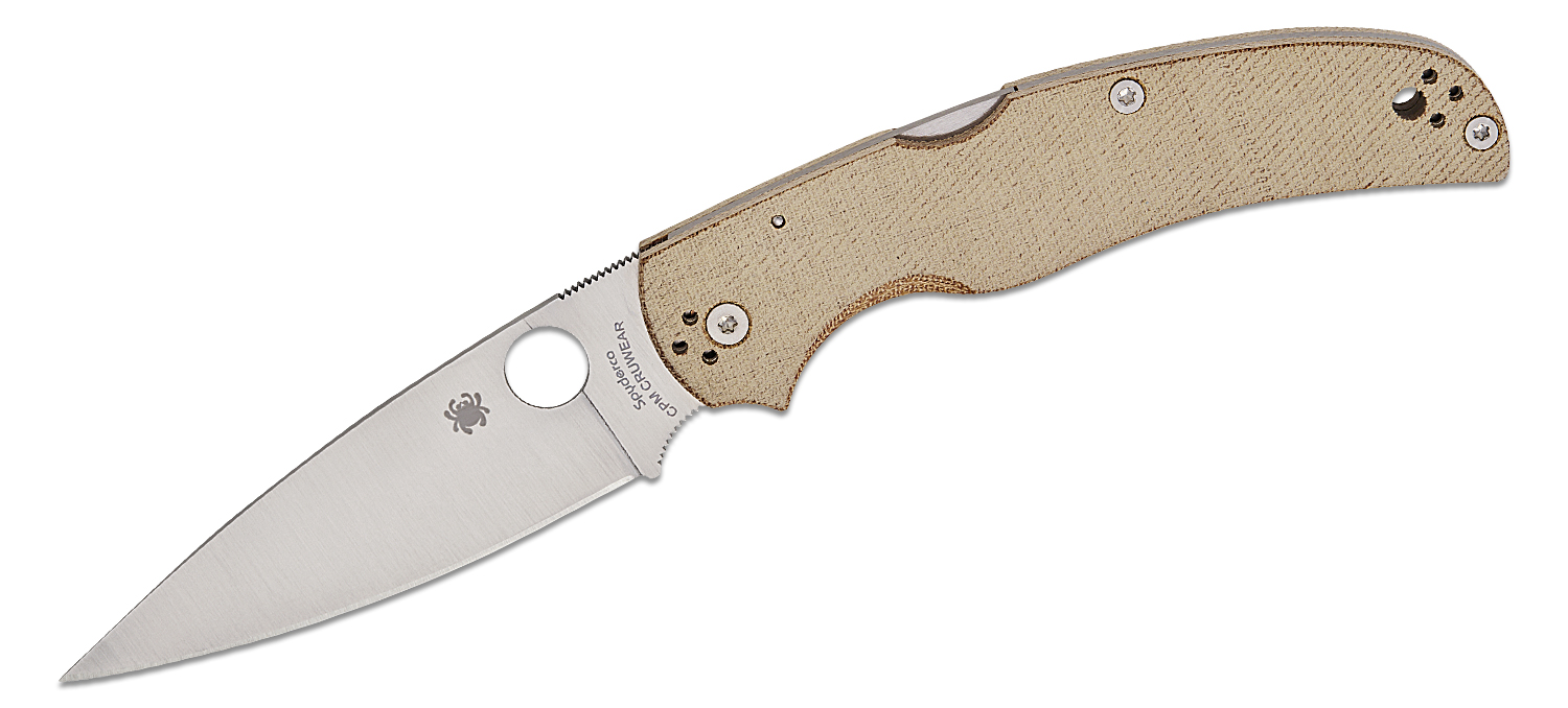 This model features the ever-impressive CPM-CruWear tool steel, offering fantastic performance and excellent edge retention. As Spyderco has done in the past, this CruWear blade is masterfully paired with brown Canvas Micarta handles, providing both an attractive appearance and an excellent grip that will withstand the test of time.