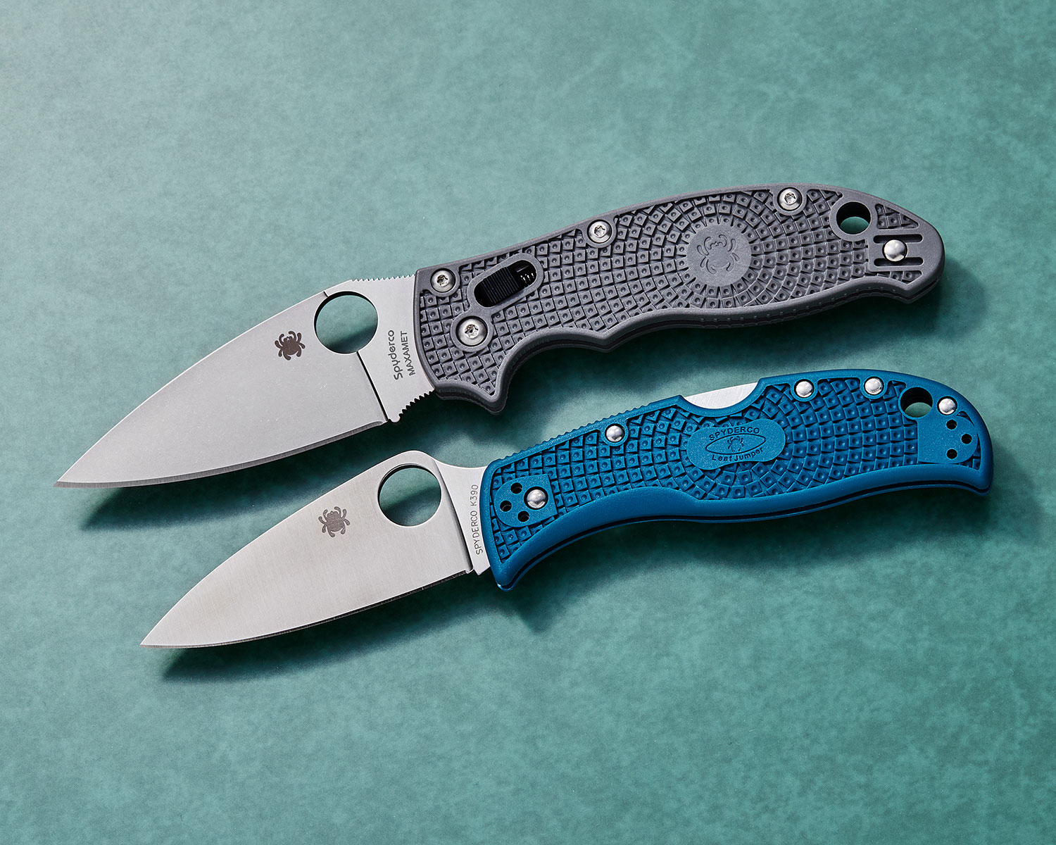 Many of the defining qualities of the Delica 4 and Endura 4 can be found in their handle construction. Their lightweight, ergonomic handles are built on a framework of stainless steel liners. Skeletonized to reduce weight, the liners give the knives impressive structural strength, support their sturdy back lock mechanism, and provide solid anchor points for their four-position pocket clips. The liners are nested within scales injection-molded from tough fiberglass-reinforced nylon (FRN) and feature Spyderco's signature Bi-Directional Texture pattern for a secure, non-slip grip. Matching FRN backspacers add additional strength and anchor the springs for the knives' back lock mechanism, which is easily operated with either hand.