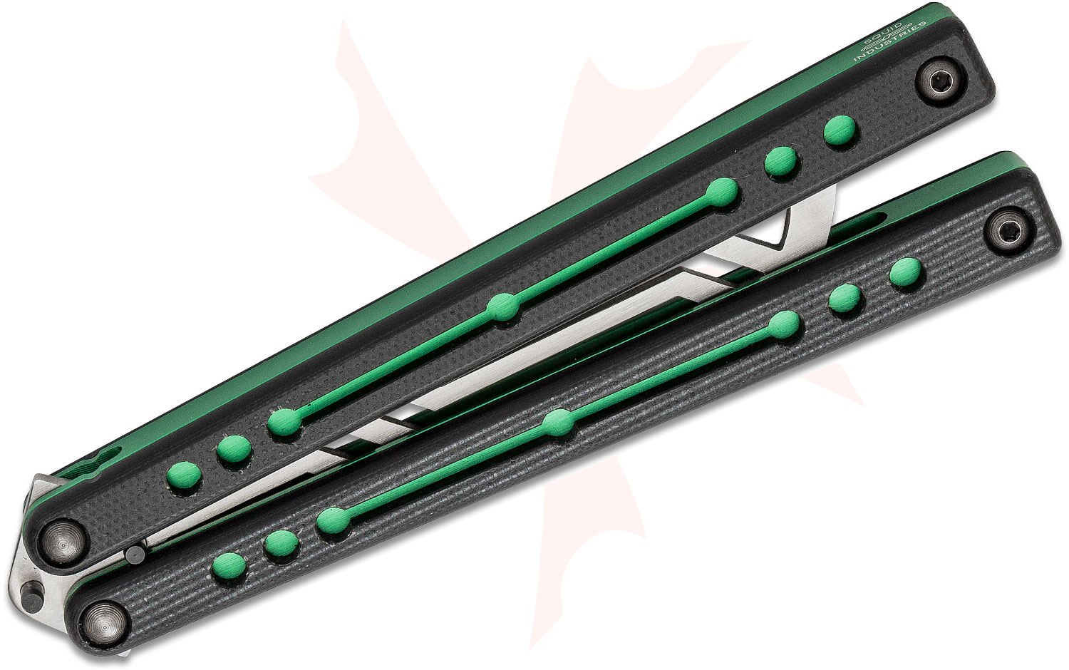 Squid Industries Nautilus Balisong Butterfly Trainer 5.05" Unsharpened Stainless Steel Blade, Green Aluminum Frame with Black G10 Scales