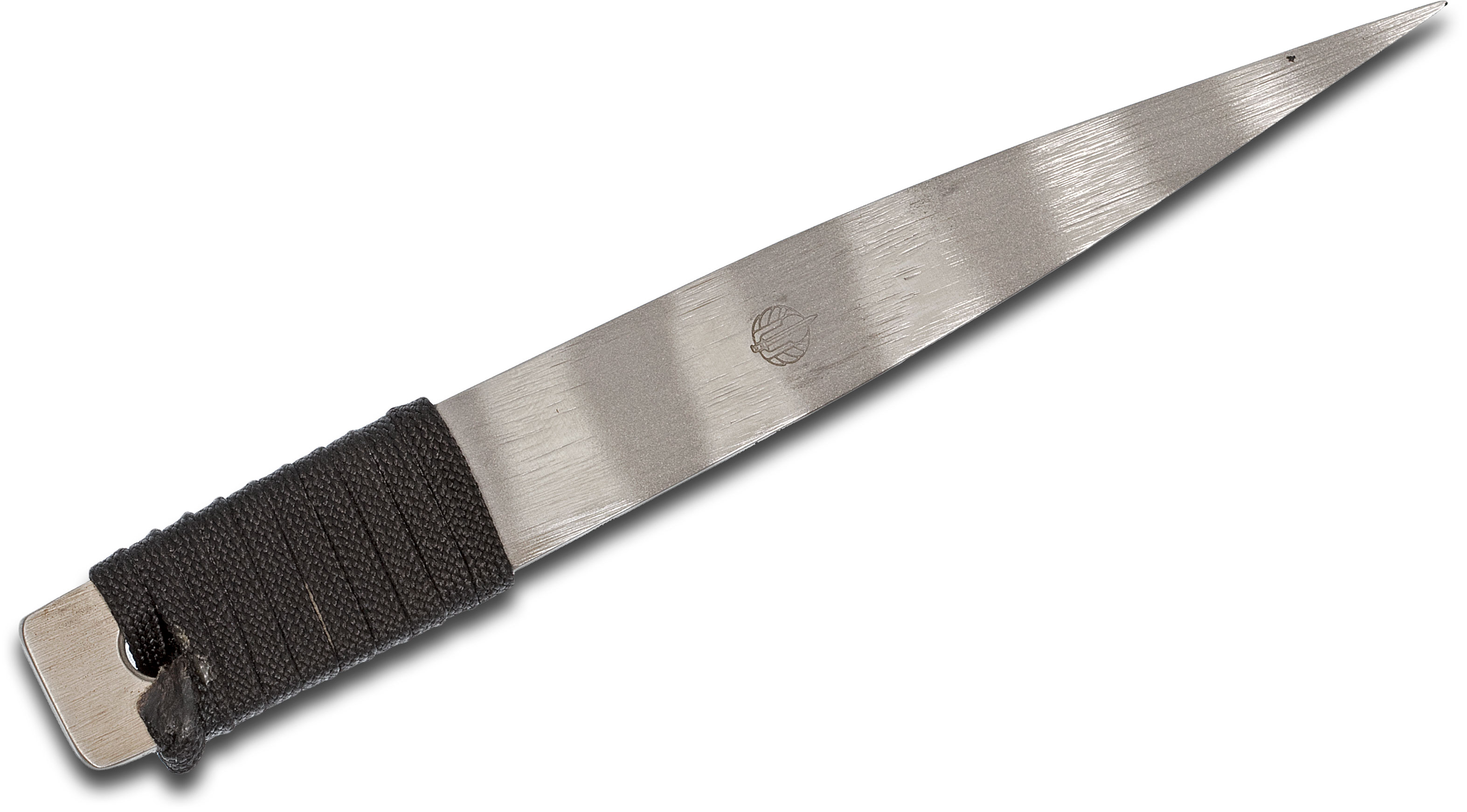 Strider Knives LM Nail Fixed CPM-154 Tiger Striped Blade, 5.9" Overall, Black Cord Wrapped Handle, Kydex Sheath