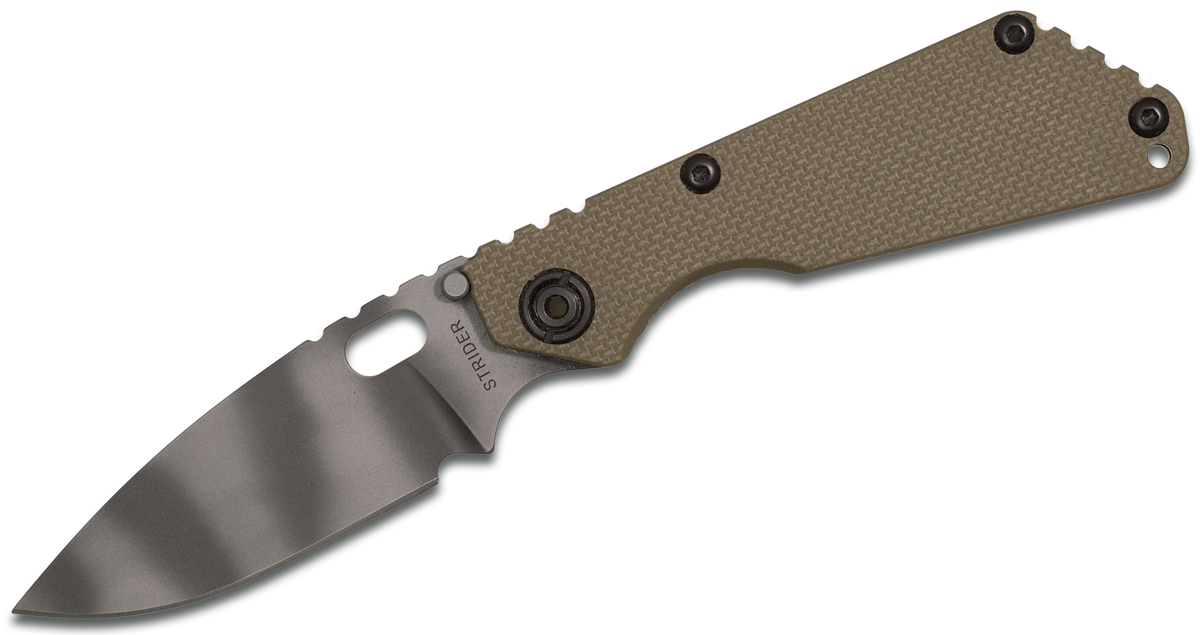 Strider Knives SnG Folding Knife 3.5" PSF27 Tigerstriped Blade, OD Green G10/Flamed Titanium Handle, Frame Lock - SnG-S