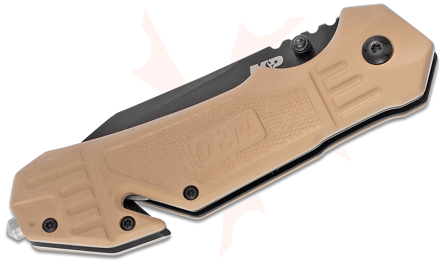Smith & Wesson M2.0 M&P Rescue Folding Knife 3.27" Black Oxide Coated Tanto Combo Blade, Tan Rubberized Aluminum Handles, Liner Lock - 1100076