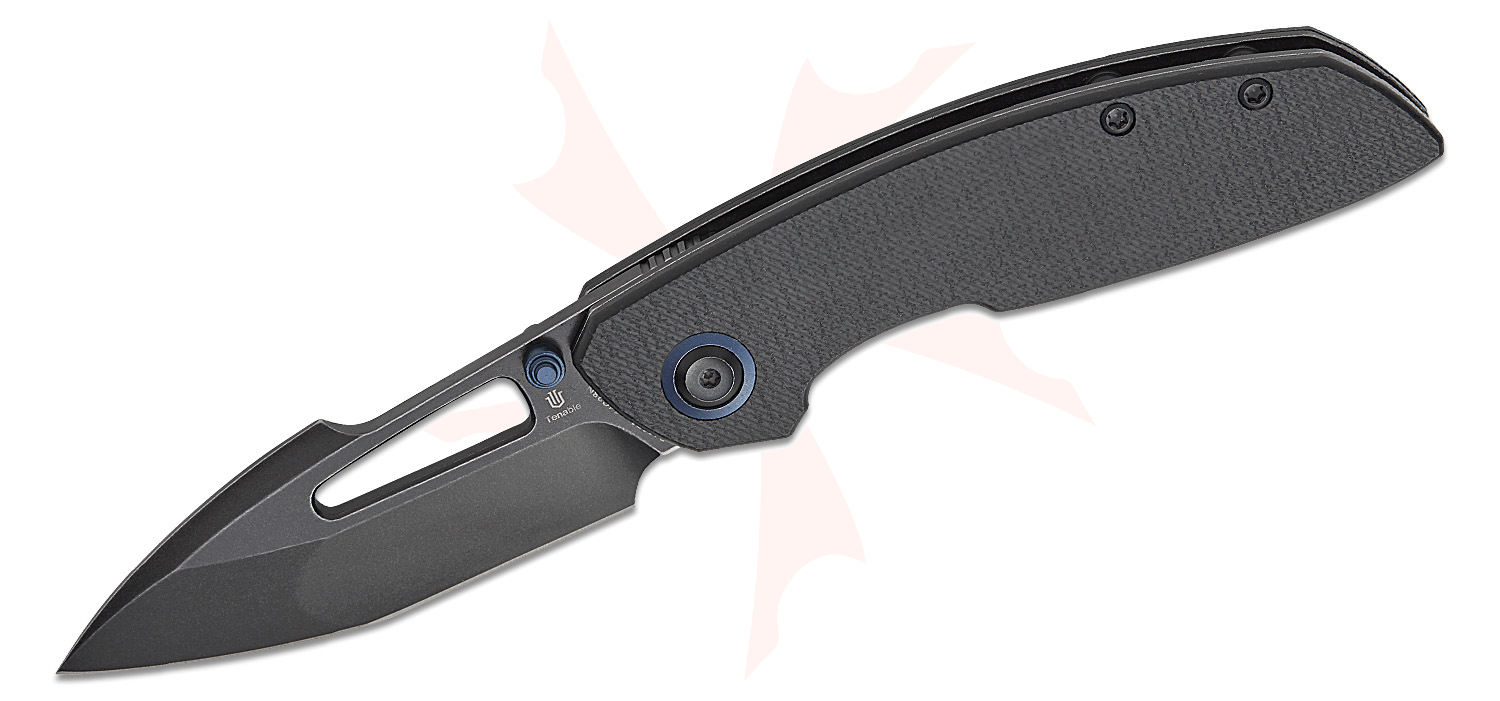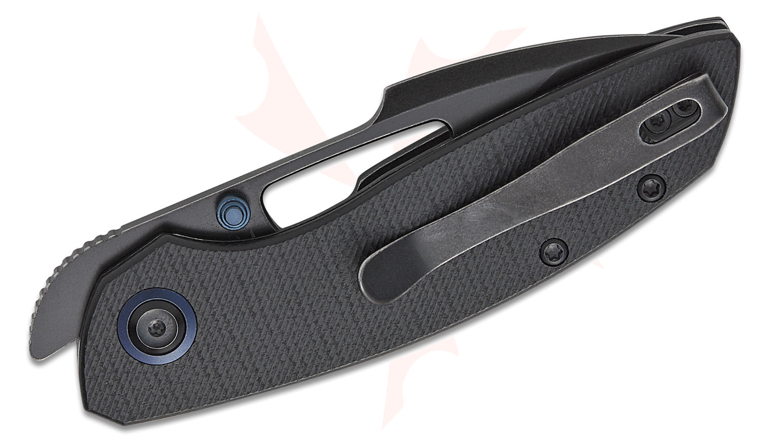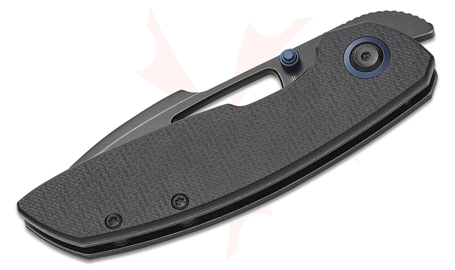 Tenable Knives Link Liner Lock Folding Knife 3" 14C28N Black Stonewashed Harpoon Blade, Black Micarta Handles - B1068A4