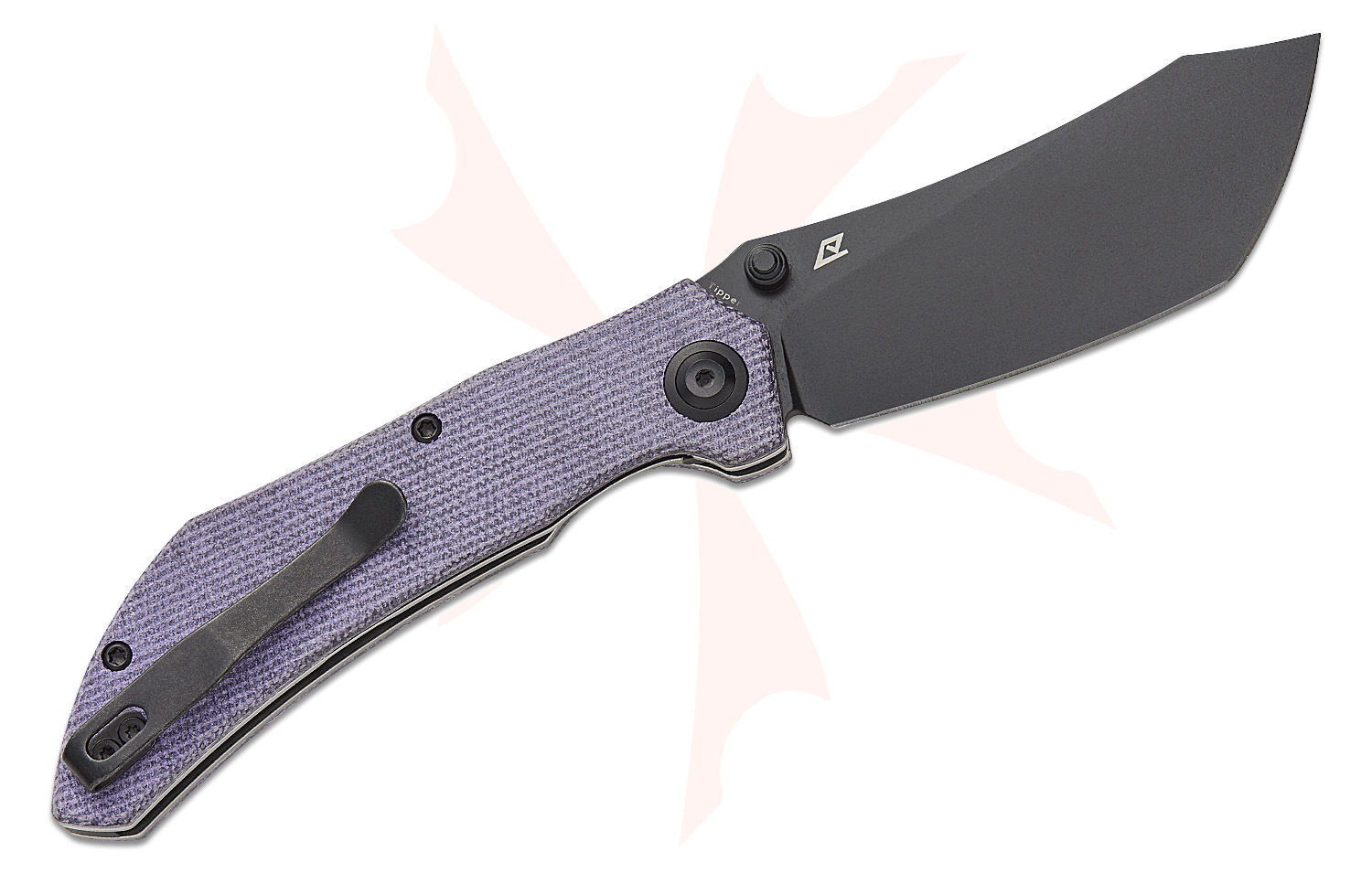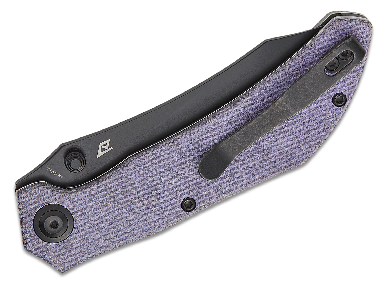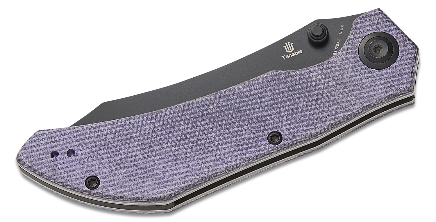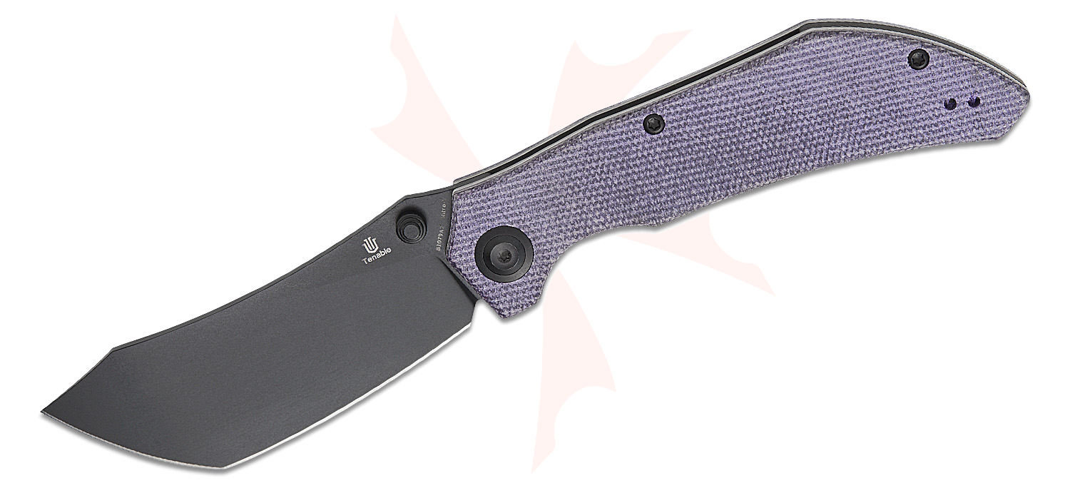 Tenable Knives Tipper Folding Knife 3.39" Nitro-V Black Stonewashed Modified Cleaver Blade, Purple Micarta Handles, Liner Lock - B1079A2
