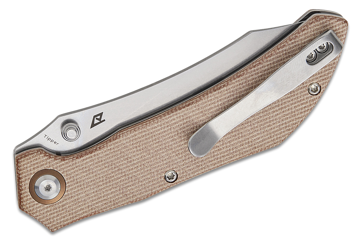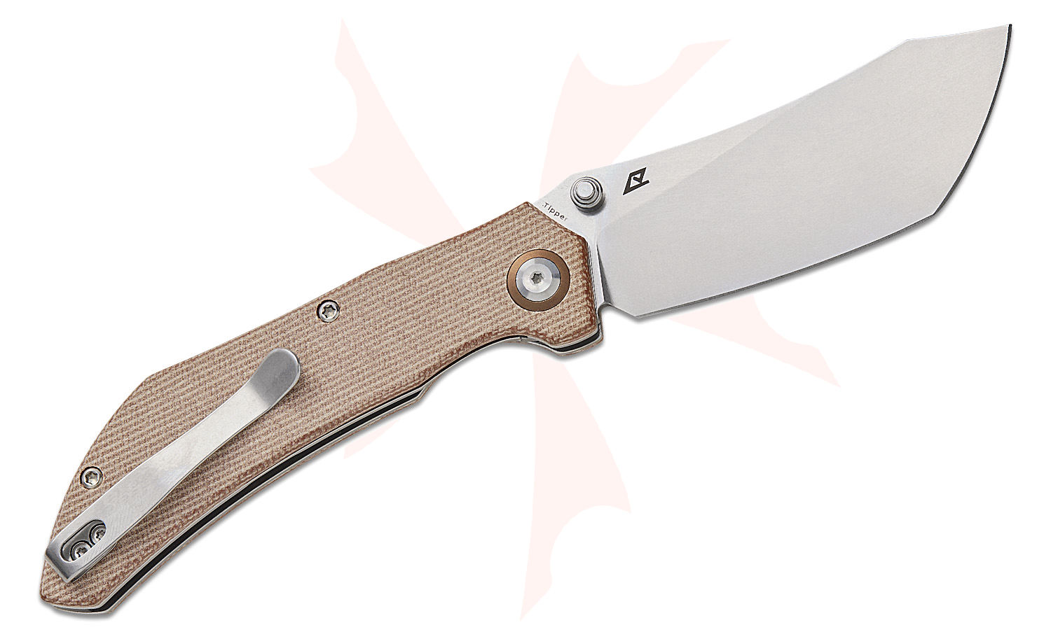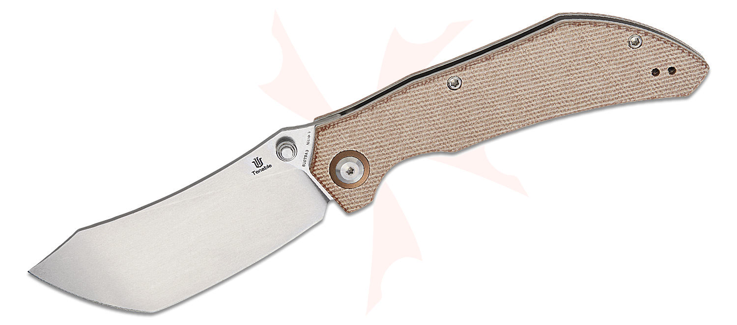 Tenable Knives Tipper Folding Knife 3.39" Nitro-V Stonewashed Modified Cleaver Blade, Brown Micarta Handles, Liner Lock - B1079A3