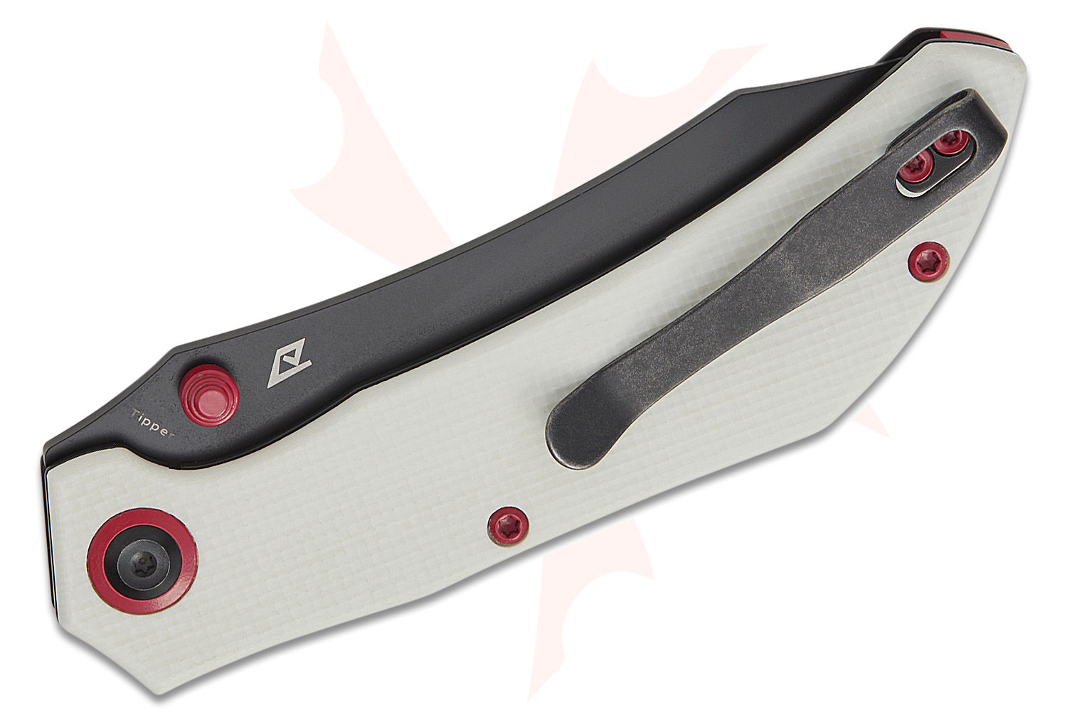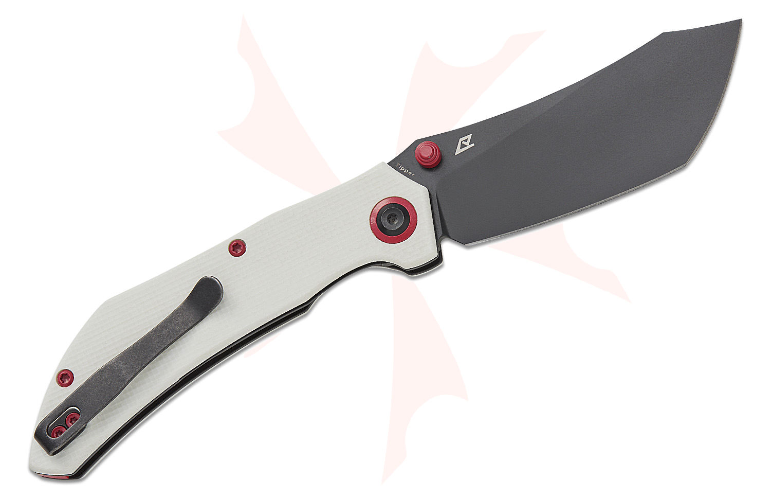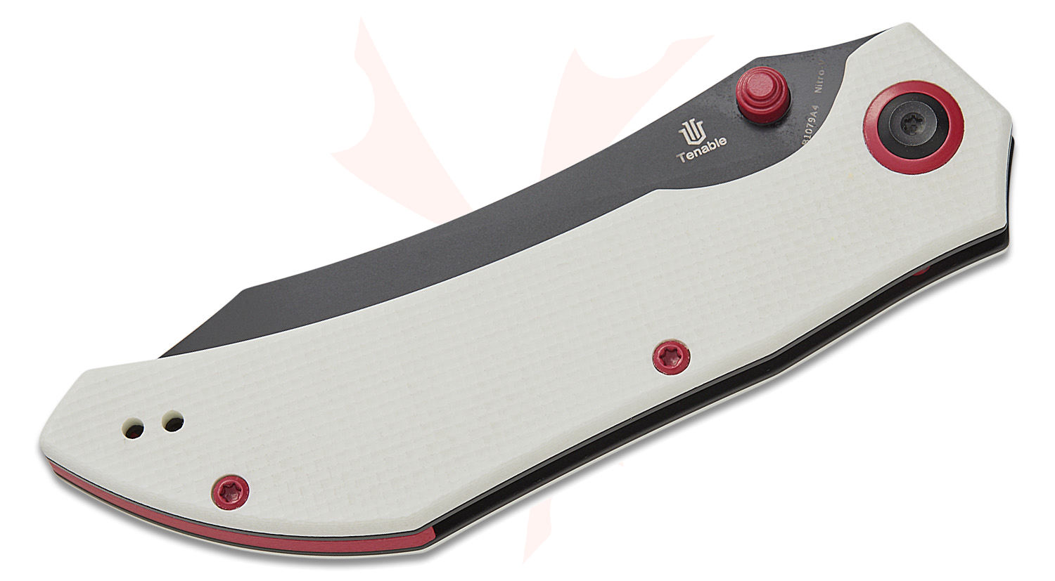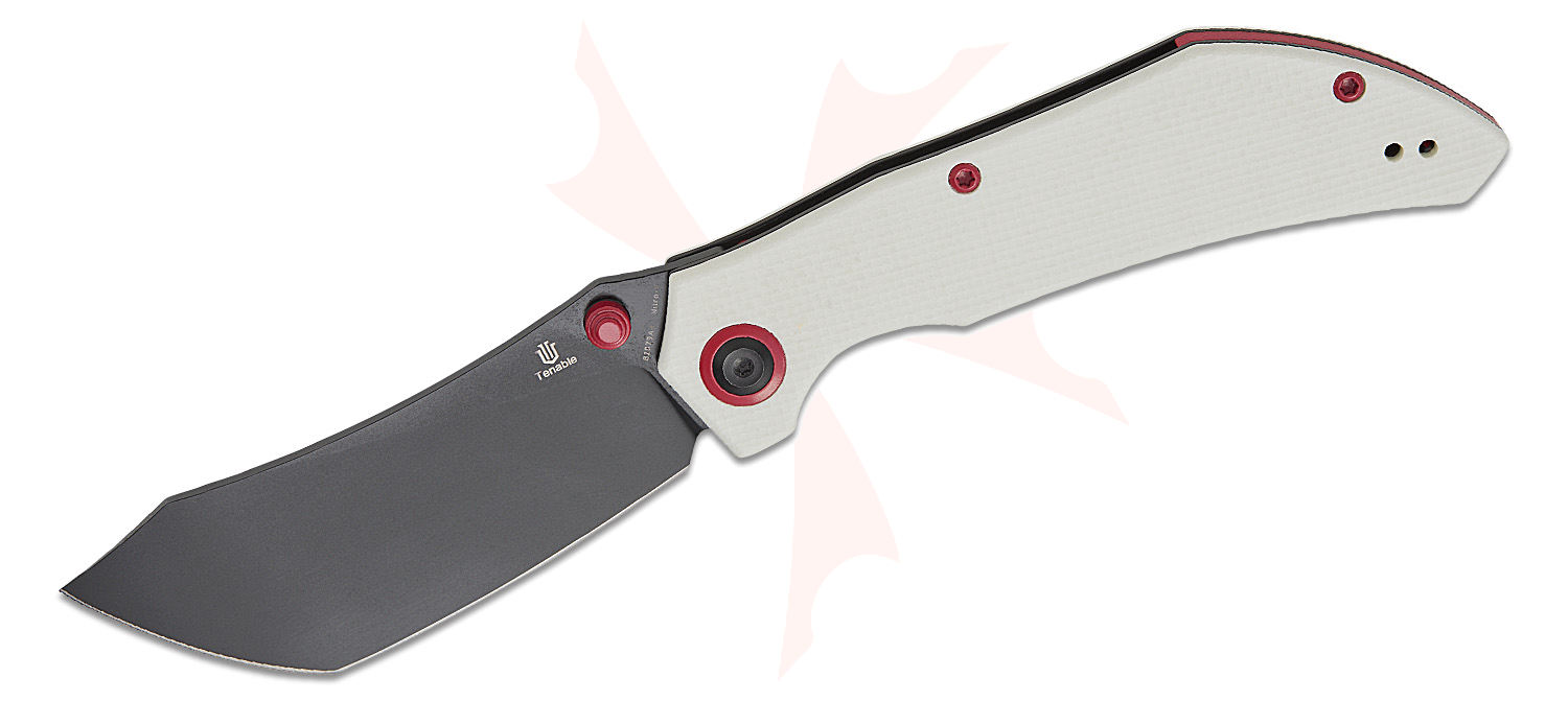 Tenable Knives Tipper Folding Knife 3.39" Nitro-V Black Stonewashed Modified Cleaver Blade, White G10 Handles, Liner Lock - B1079A4