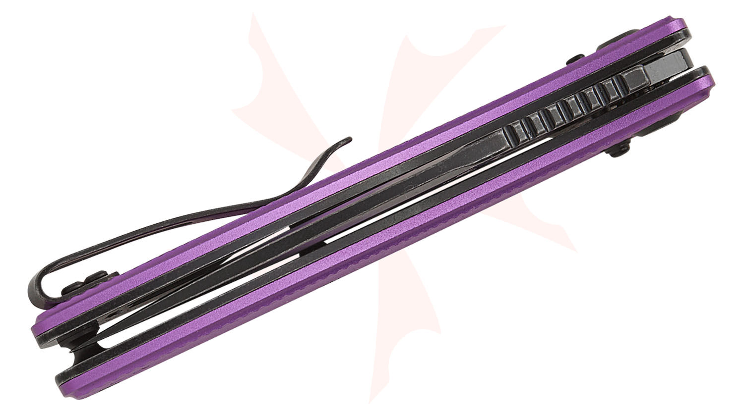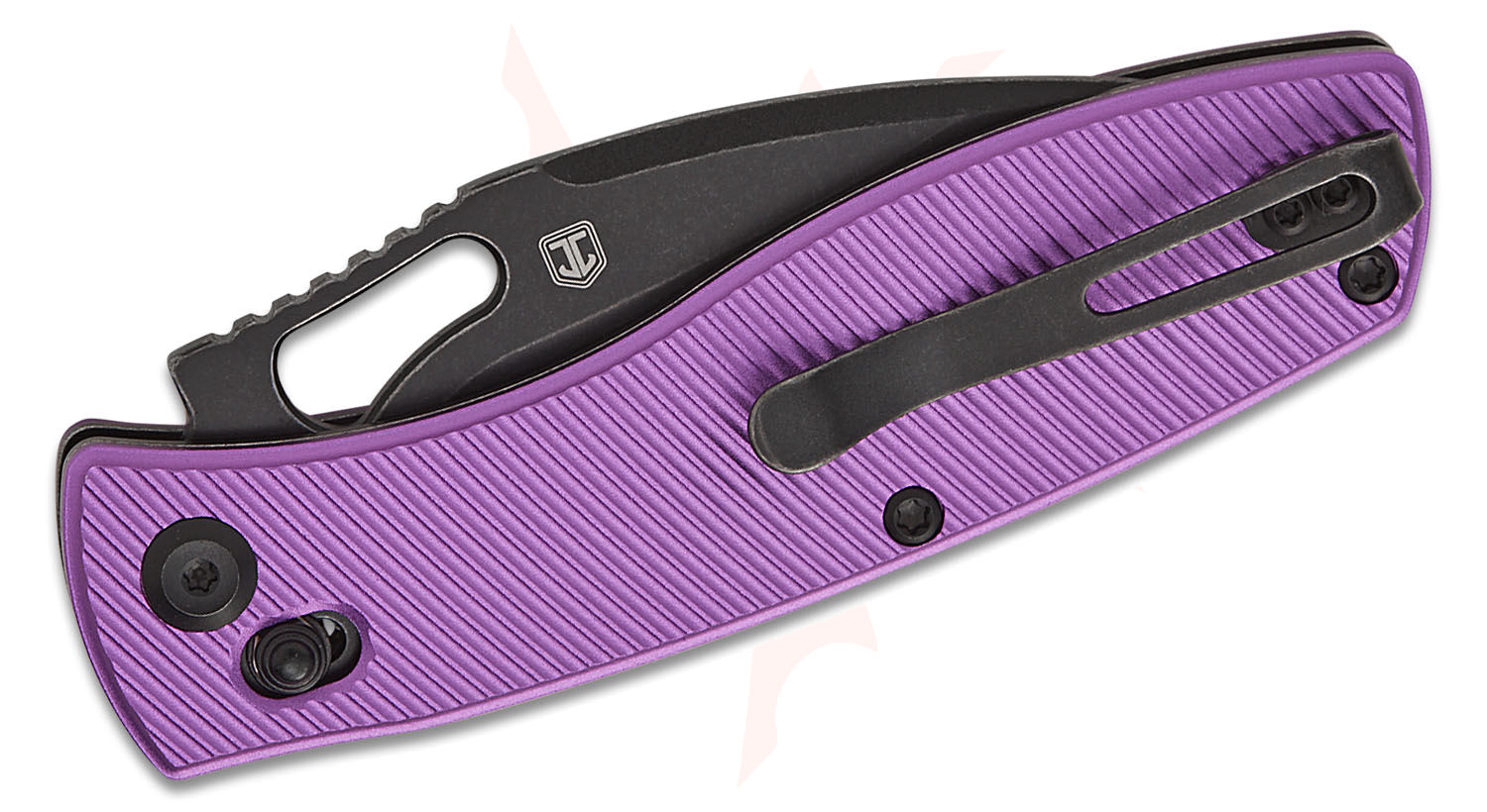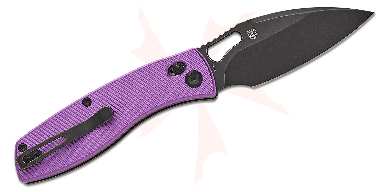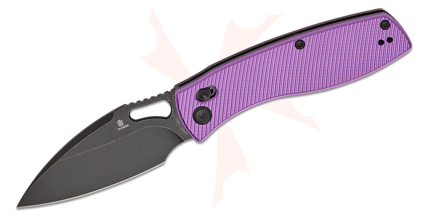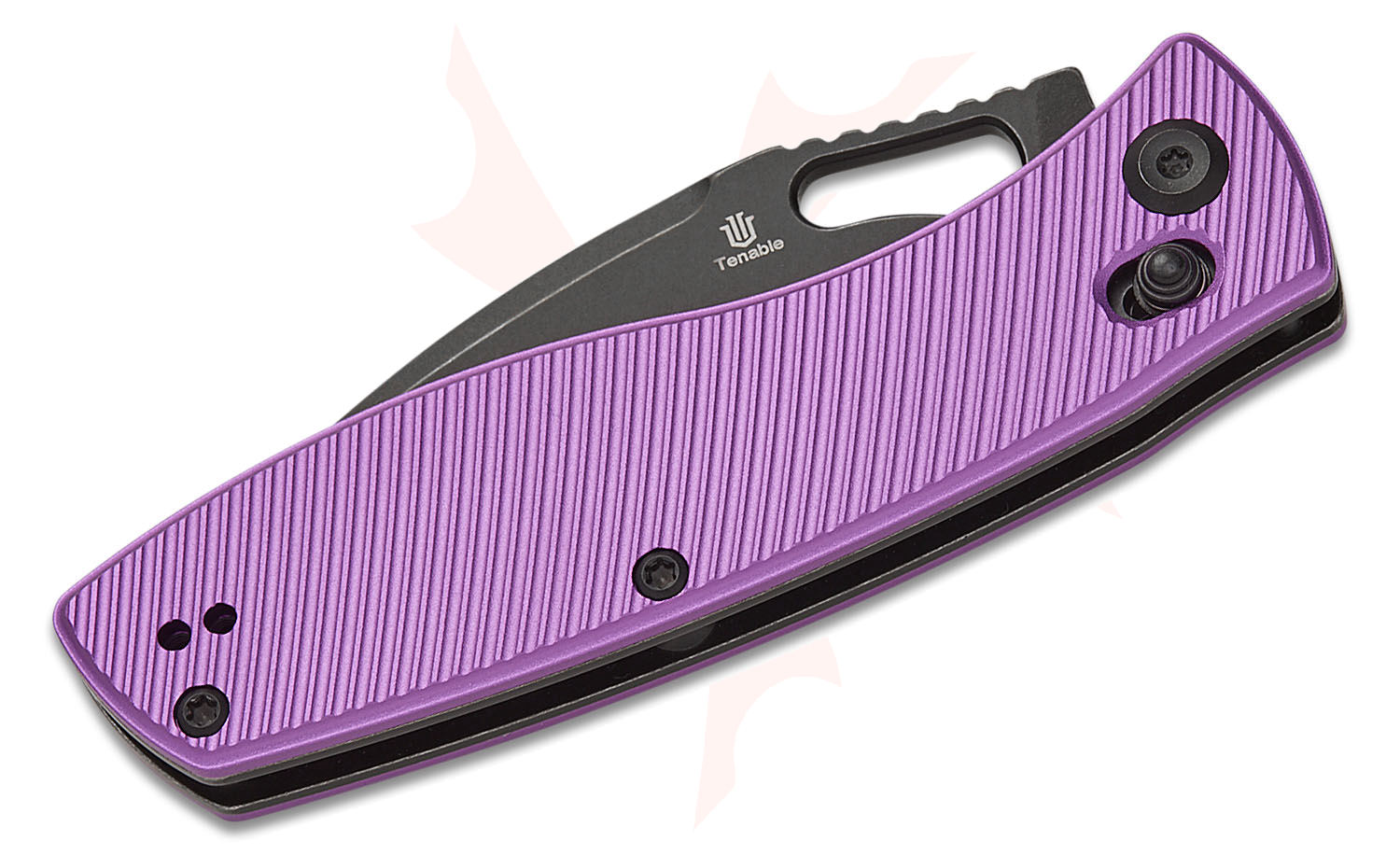Tenable Knives Heron Crossbar Lock Folding Knife 3.13" Nitro-V Black Stonewashed Leaf Blade, Purple Milled Aluminum Handles - B2124V1