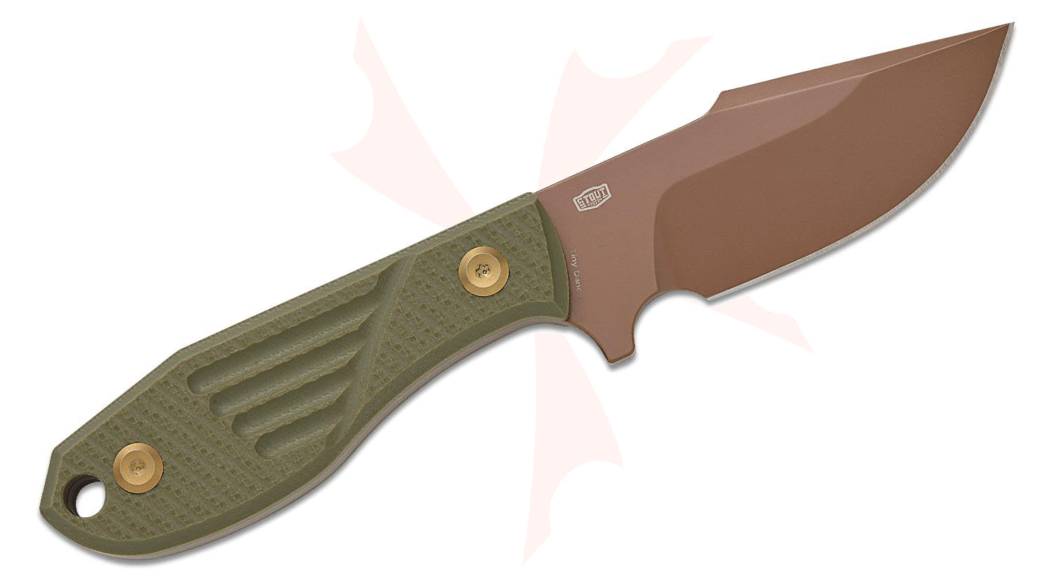 Tenable Knives Tiny Dancer Fixed Blade Knife 3.17" D1 Rose Gold Harpoon Blade, Olive Green G10 Handles, Kydex Sheath - G014A7