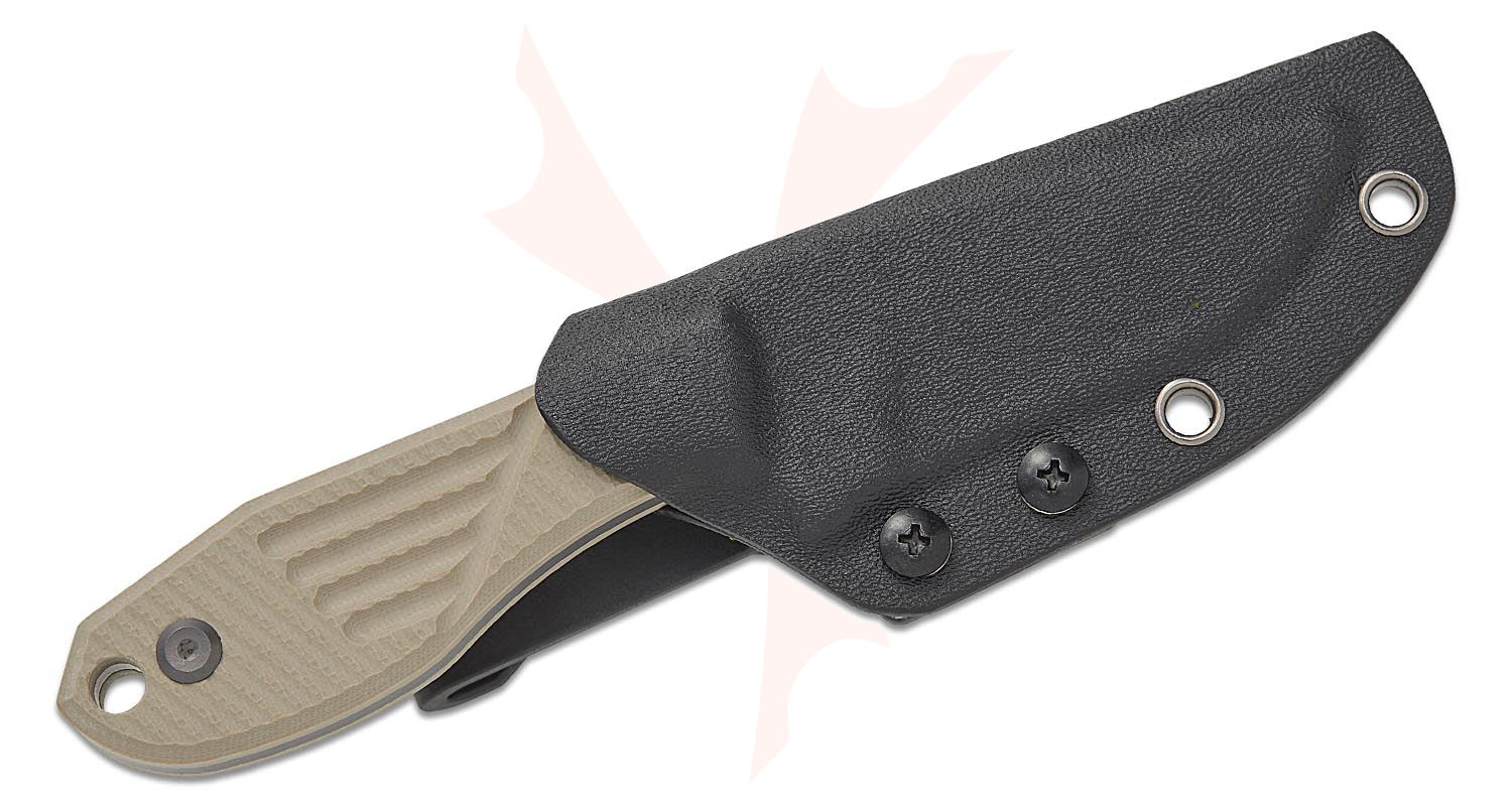 Tenable Knives Tiny Dancer Fixed Blade Knife 3.17" D2 Gray TiNi Coated Harpoon Blade, Light Sand G10 Handles, Kydex Sheath - G014A8