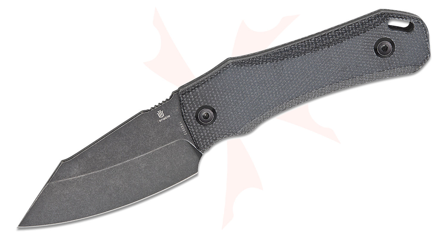Tenable Knives Loki Fixed Blade Knife 2.99" D2 Black Stonewashed Wharncliffe Blade, Black Micarta Handles, Kydex Sheath - G1058A4